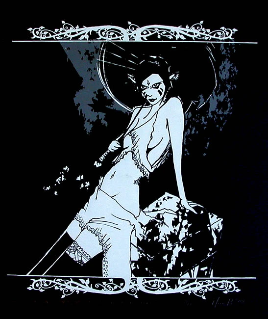 J’ai approché la sérigraphie pendant mes études en enseignement des arts, parce que je cherchais une alternative à la peinture, surtout aux pinceaux. Plutôt poche avec un pinceau. L’aspect de l’original en multiples et le côté « lo-tech» m’ont séduit. Mais c’est plus tard, après d’autres études en design et un voyage très inspirant au Japon, où j’ai empilé carnets de croquis par dessus carnets de croquis, puis je me suis vraiment lancé dans une production d’affiches sérigraphiées et que jai enfin terminé ma BD « sci-fi » de robots géants : Mechalibre!
