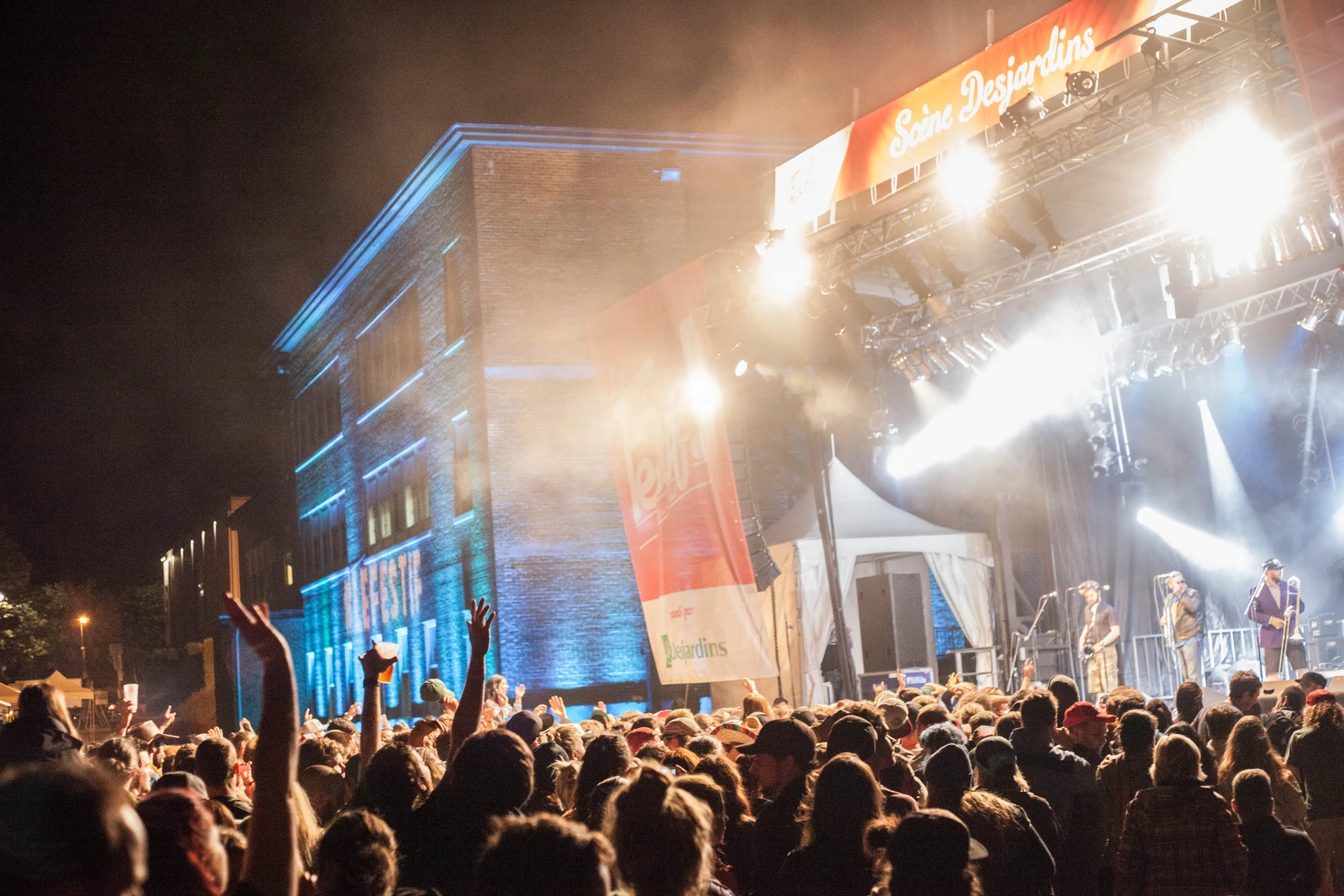 – Les Trois Accords dont on a bien dû se rendre compte qu’on est capables de chanter TOUTES les tounes (fallait voir Alex Nevsky en coulisse essayer de pas fredonner) et qui voient se créer une chaîne humaine de quelques centaines de fans au hystériques au milieu du concert avant de finir par faire monter tous les scèneux de coulisses sur scène pendant “Je m’en retourne à l’institut”, ce qui nous donne droit à un solo de flûte de Marc-Étienne Mongrain, photographe émérite et tout-terrain, et à un solo de selfie de Philippe Fehmiu (un peu moins excitant mettons).