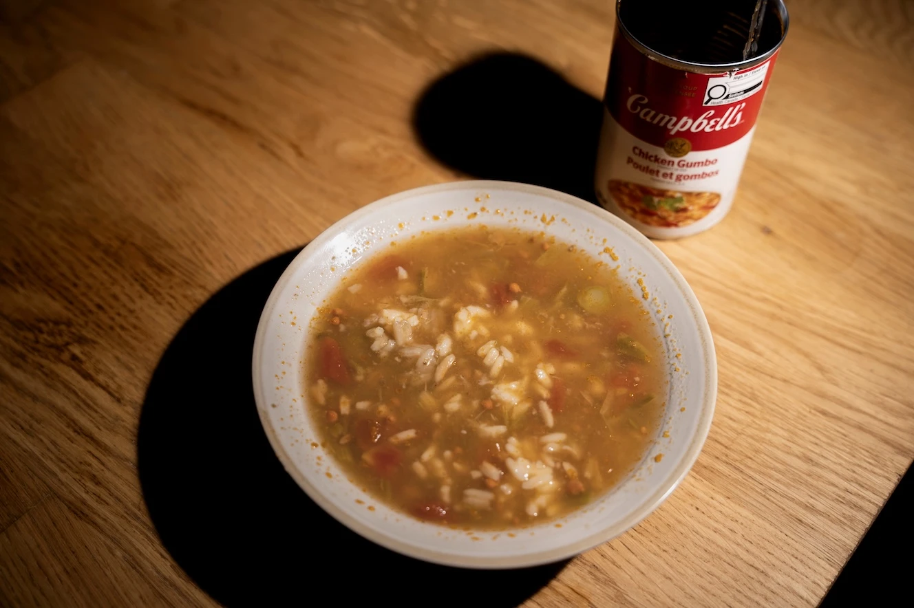 Puis, arrive l’Amérique industrielle. Fondée en 1869 au New Jersey, l’entreprise Campbell’s met en conserve, dès les années 1930, un exotisme alors en vogue : la Chicken Gumbo Soup. Poulet, riz, épices — la Louisiane en boîte.