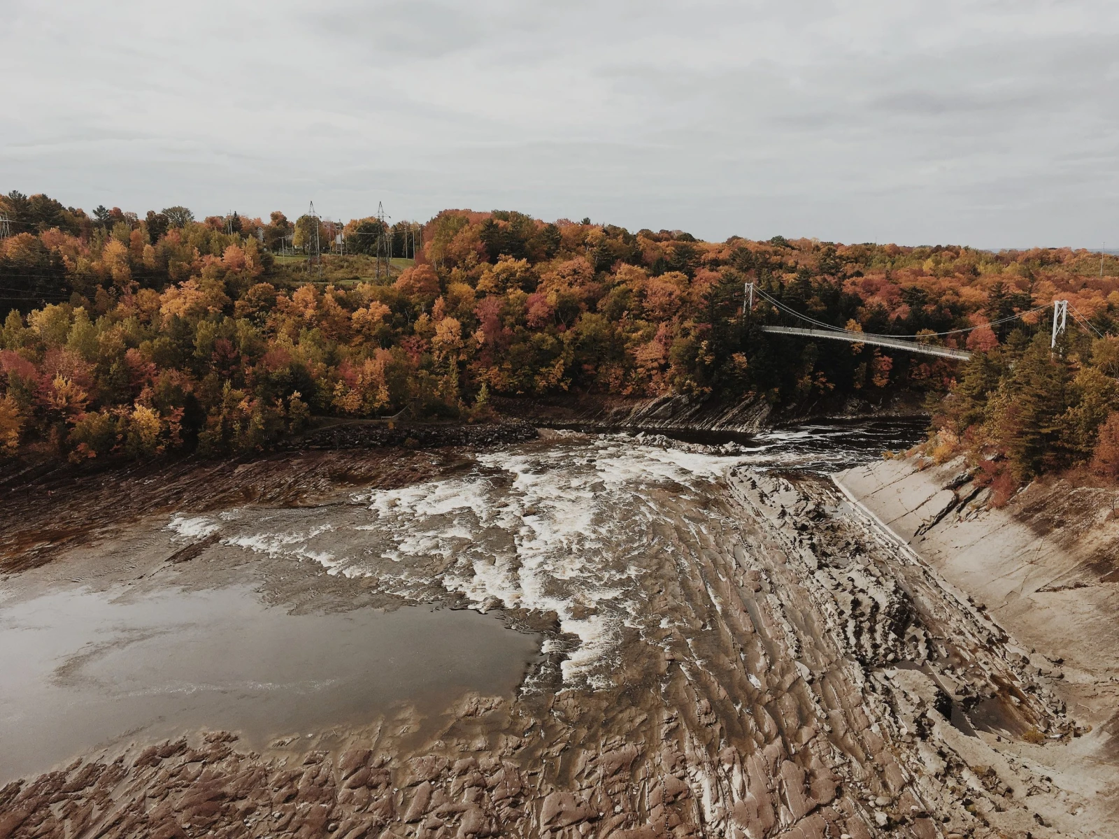 Super longue passerelle surplombant des chutes de 35 mètres, anciennement contraintes par un barrage hydro-électrique, le parc des Chutes de la Chaudière offre, en été, la possibilité de se prélasser sur les roches chaudes au bas des chutes comme des tortues au soleil.