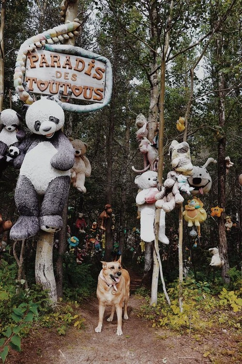Dans une ambiance glauque, on retrouve des milliers de peluches attachées aux arbres de cette forêt nommée le Paradis des Toutous. On se promène dans un sentier où les toutous sont regroupés par thème – aussi intense que ça. À voir absolument. Je n’ose même pas imaginer l’ambiance nocturne…