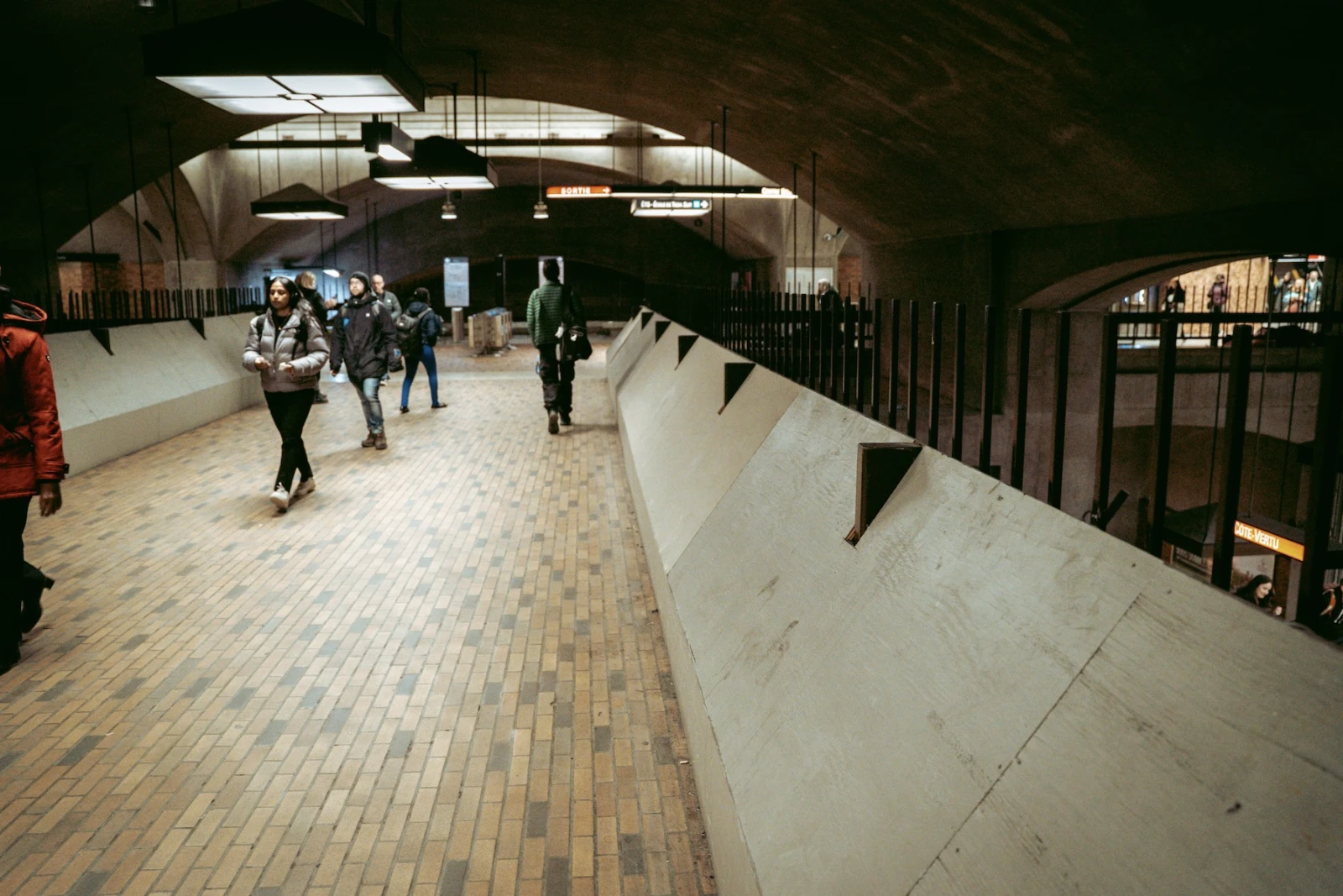 C’est sur la ligne verte que l’impact saute aux yeux. Entre Peel et Joliette, une zone particulièrement sensible, les stations, les quais, les couloirs migratoires ont été désertés par ceux qui, hier encore, y trouvaient refuge. L’ambiance est liminale, étrangement vide. Pas d’attroupements. Juste un silence flottant. Des grillages ont poussé à Saint-Laurent, à Place-des-Arts.