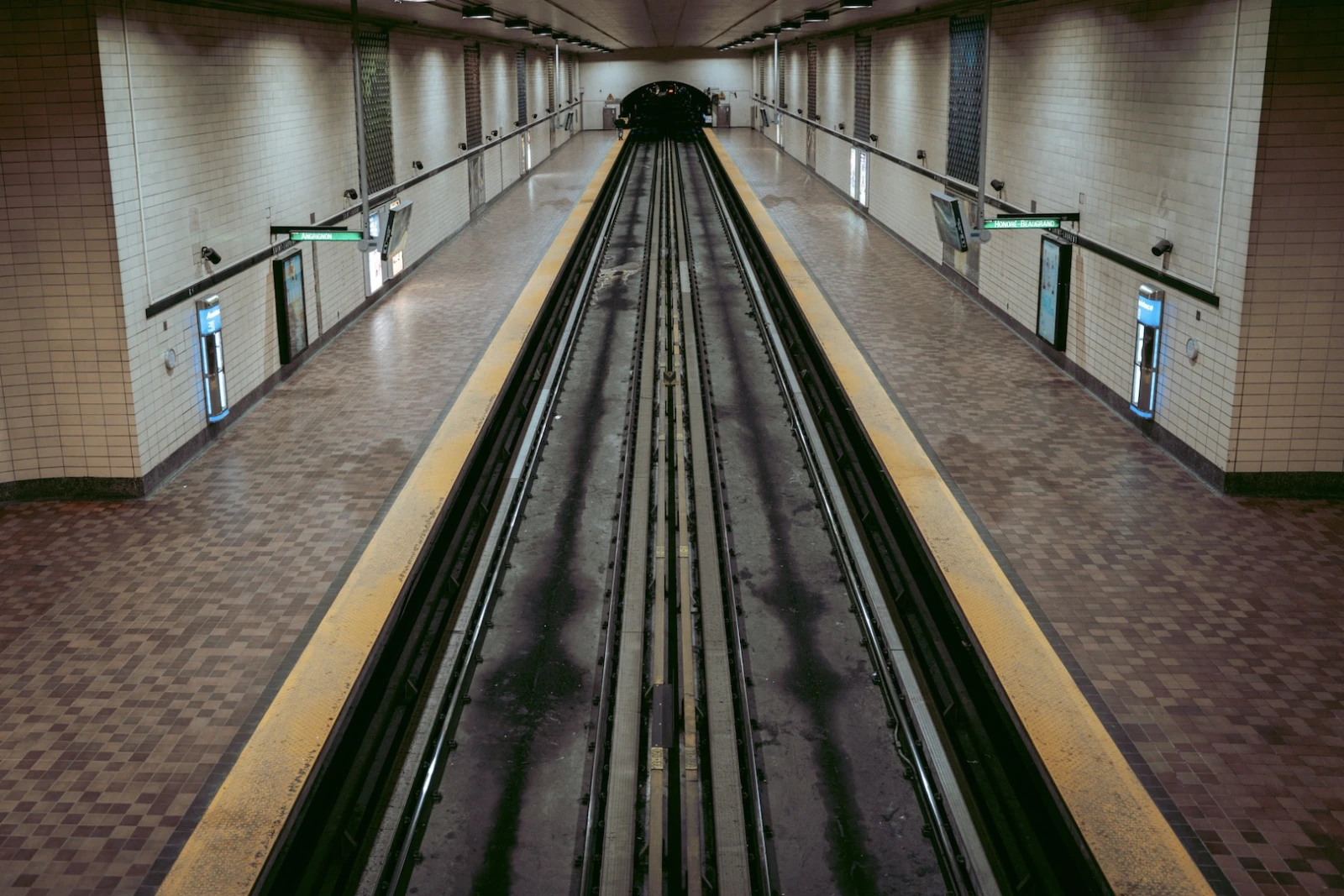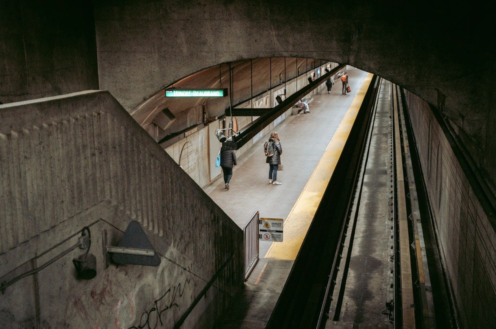 Des jeunes parlent d’« ops » sur un banc. Une dame âgée tourne les pages d’un roman, jetant un regard furtif derrière son épaule. Des couples s’accrochent l’un à l’autre jusqu’au terminus. Une longue dérive dans les entrailles de Montréal.