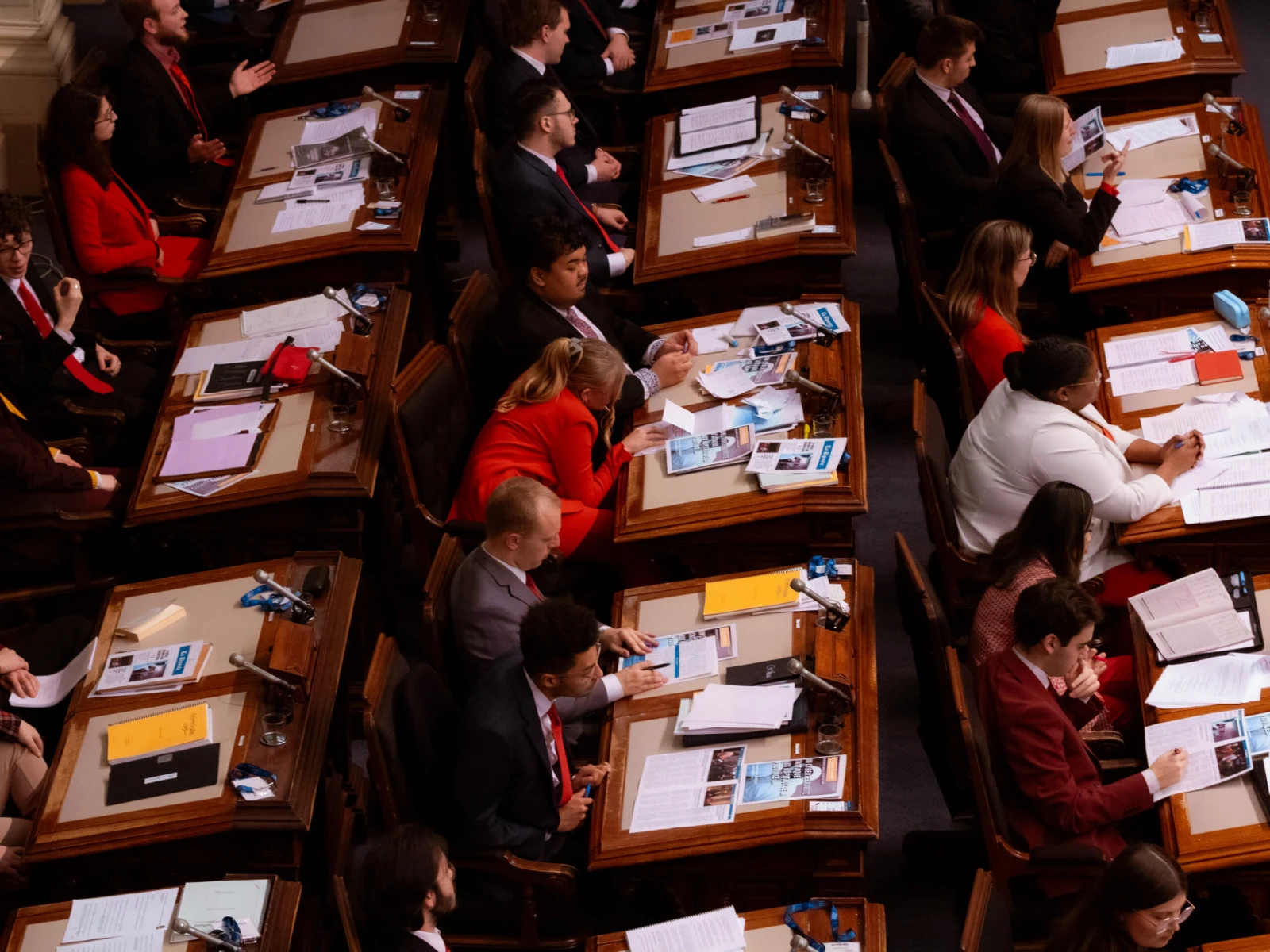 Le deuxième jour est consacré aux travaux parlementaires. On présente un budget, des projets de loi et un livre blanc. Dans le salon Bleu, il est important de garder un décorum, donc on ne peut pas parler et les cellulaires sont interdits.