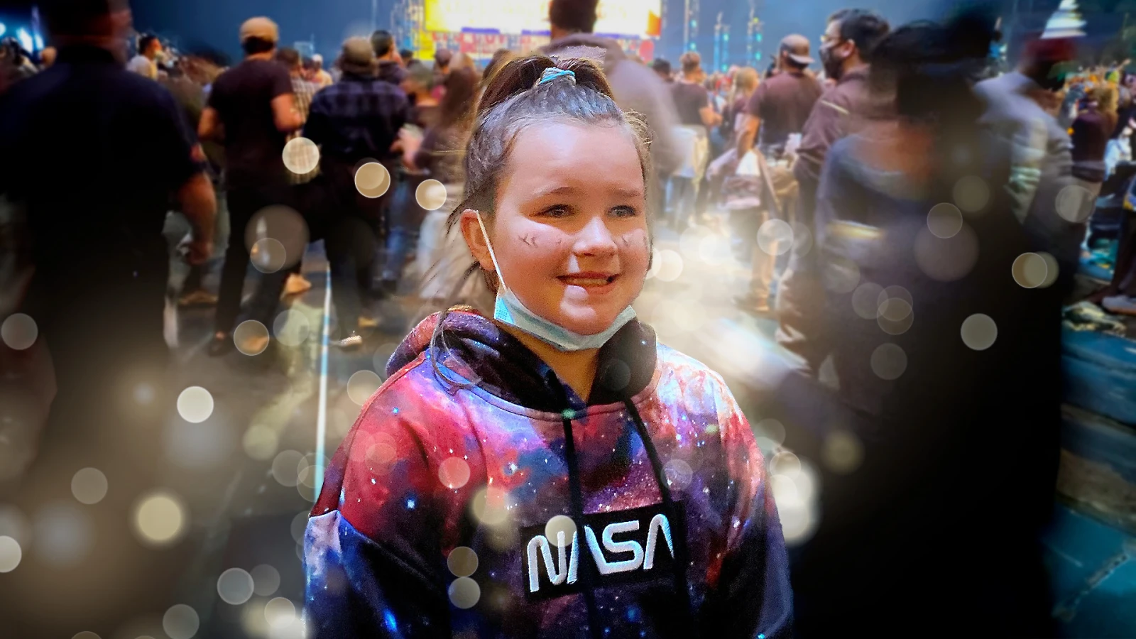 Je me souviens avoir passé le concert à m’obstiner avec Simone pour qu’elle baisse son masque pour chanter ses chansons favorites, en vain. La petite, même si elle avait le droit avant douze ans, respectait religieusement les règles.