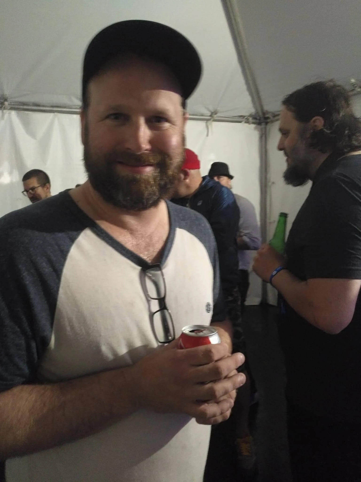 J’étais alors avec ma collègue Christina et le chanteur nous avait offert des bières pendant que le band barrait des tounes de son pacing à cause des pluies diluviennes.