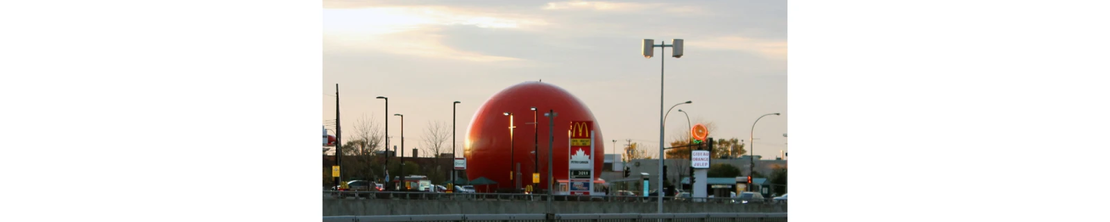 Le week-end venu, le stationnement du restaurant accueille des rassemblements de motards et de vieilles voitures. Les touristes japonais se rendent au métro Namur, question de photographier cette boule colorée. Elle souhaite la bienvenue aux automobilistes pris dans les innombrables embouteillages sur l’autoroute métropolitaine… Si j’avais une icône à choisir pour représenter Montréal, ce serait elle. Pour tout ce qu’elle représente : le kitch, l’audacieux, la couleur, l’emplacement et même les mouettes qui nous agacent quand on mange sur les tables à pique-nique !