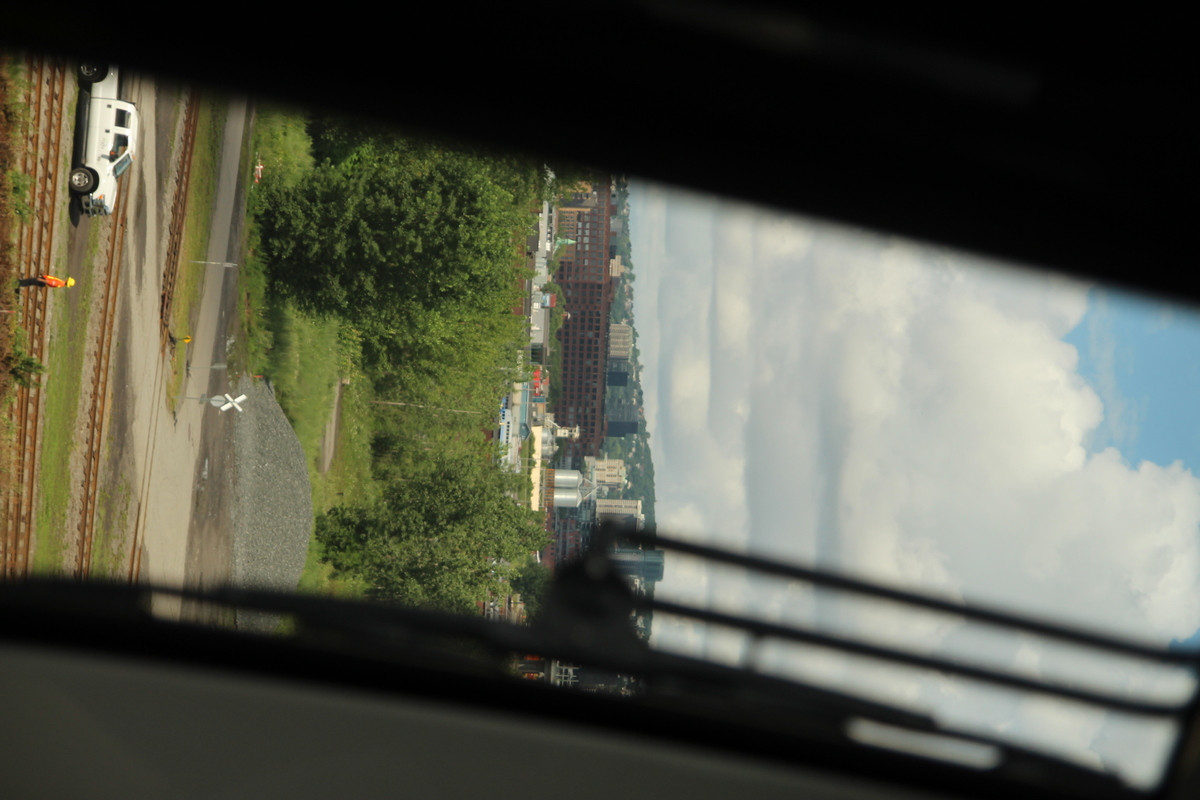 Comparativement aux foules du week-end, les wagons sont très peu remplis en ce premier lundi. Celles et ceux qui sont là sont venus découvrir l’engin et s’amassent en tête de train pour avoir la meilleure vue. Plusieurs saluent les occupant.e.s des rames qu’on croise. L’ambiance est bon enfant.