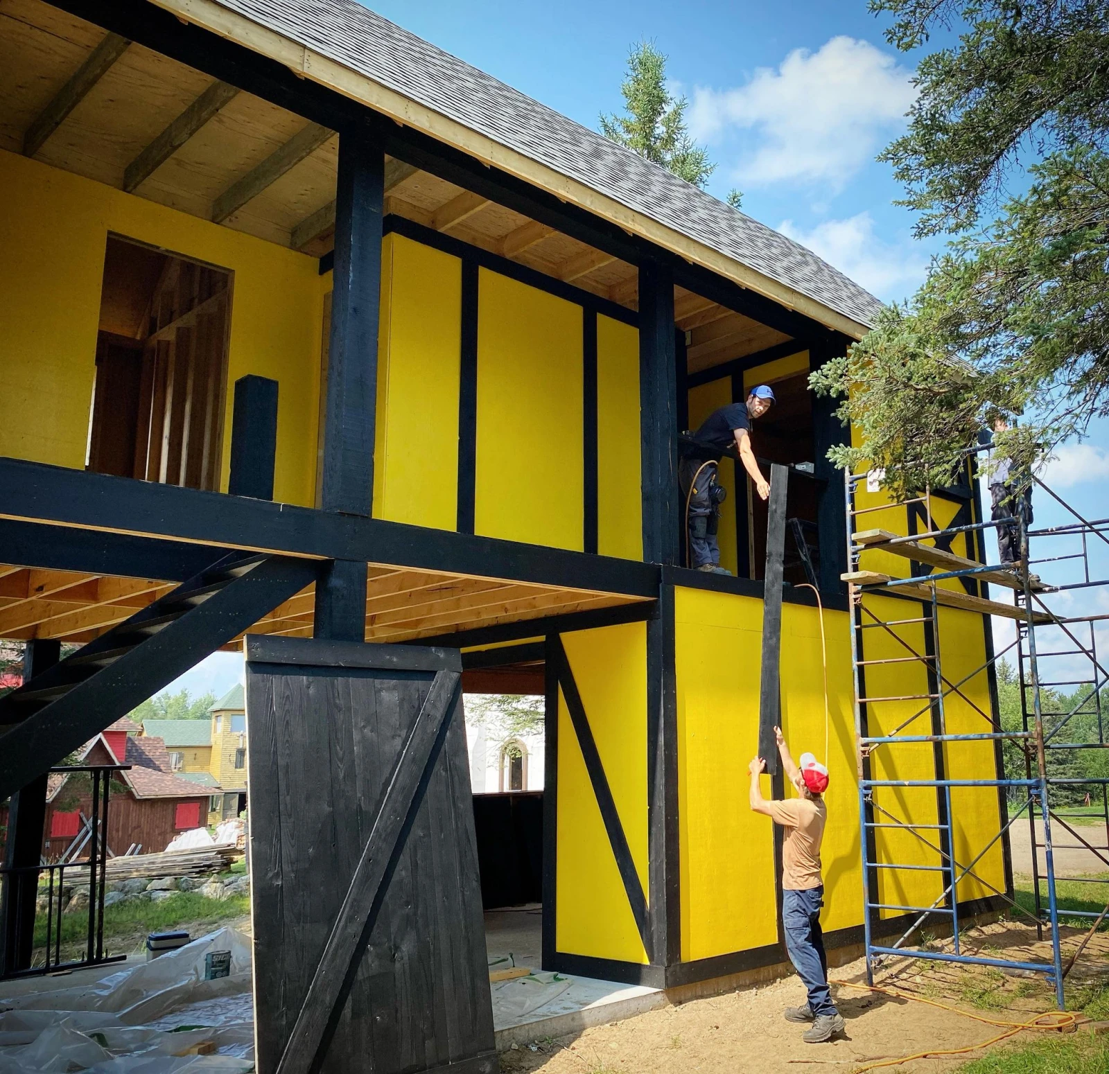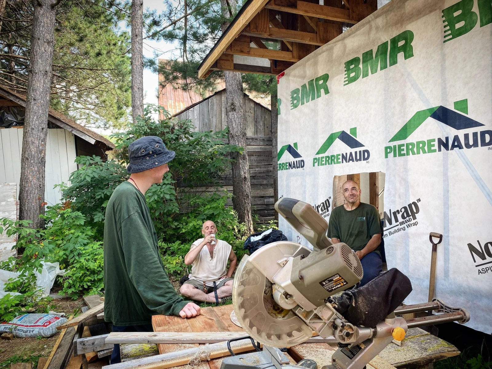Le son d’une perceuse résonne à quelques mètres. Les Rimouskois Éric et Jérémy construisent de nouveaux bâtiments pour remplacer d’anciens désuets. Éric me tend une bière, pour souffler un peu, pendant qu’un feu vif brûle au milieu de leur chantier.