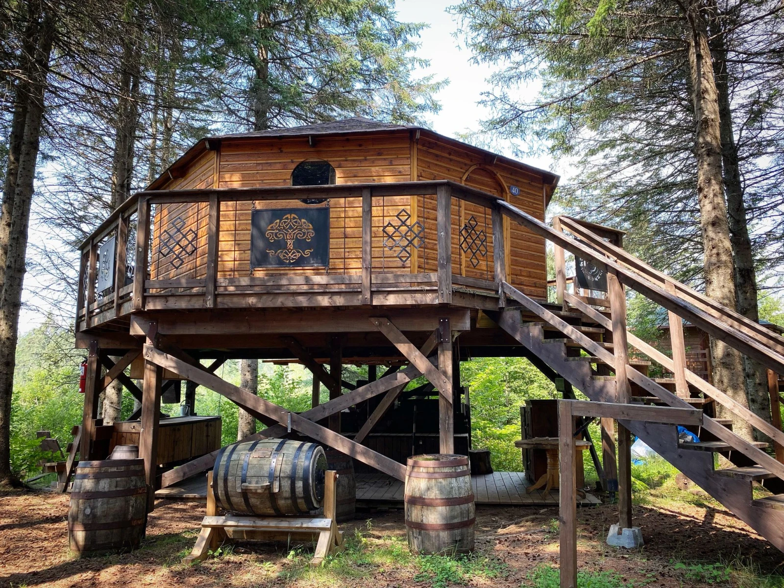 On suit un chemin de lanterne pour s’y rendre, croisant au passage le boisé où vivent les elfes. Même si le courant passe désormais dans la basse-ville, l’intégration moderne est subtile, camouflée. Même chose pour les blocs sanitaires, les contenants à gel hydroalcoolique et les lavabos dispersés sur le site. « En même temps, des toilettes chimiques restent des toilettes chimiques », laisse tomber Olivier, qui ne peut pas faire de miracles non plus pour dissimuler le 21e siècle.
