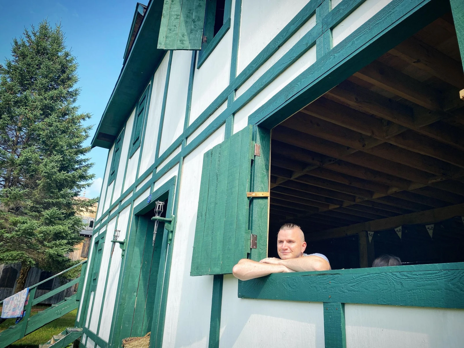 De la musique se faufile à nos oreilles. Médiévale, il va s’en dire. Elle provient de l’auberge du vieux Ruffian, où Éric Darveau alias Ulrich de Tremble prend un bain de soleil sur son balcon. « Les droits de visite étaient limités durant la pandémie et ça m’a beaucoup manqué. Je vis pratiquement ici », admet ce grand-prêtre de Solara, qui raconte avoir eu la piqûre lors d’une activité il y a dix ans.