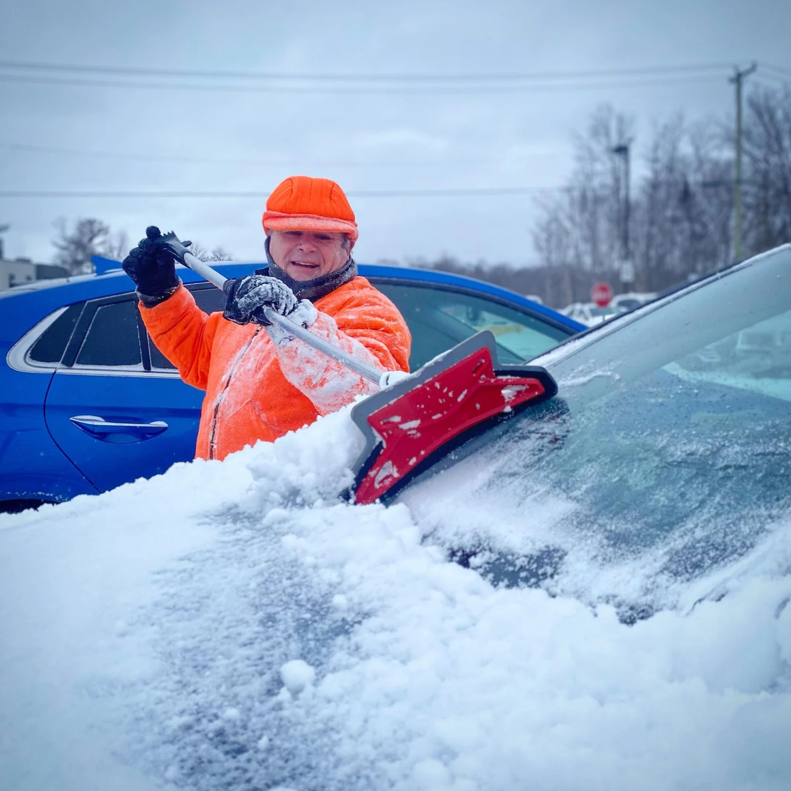 Il traîne aussi une souffleuse et des pelles dans le coffre de son pick-up au cas où il aurait besoin d’aider les employé.e.s à se frayer un chemin jusqu’à leur portière.
