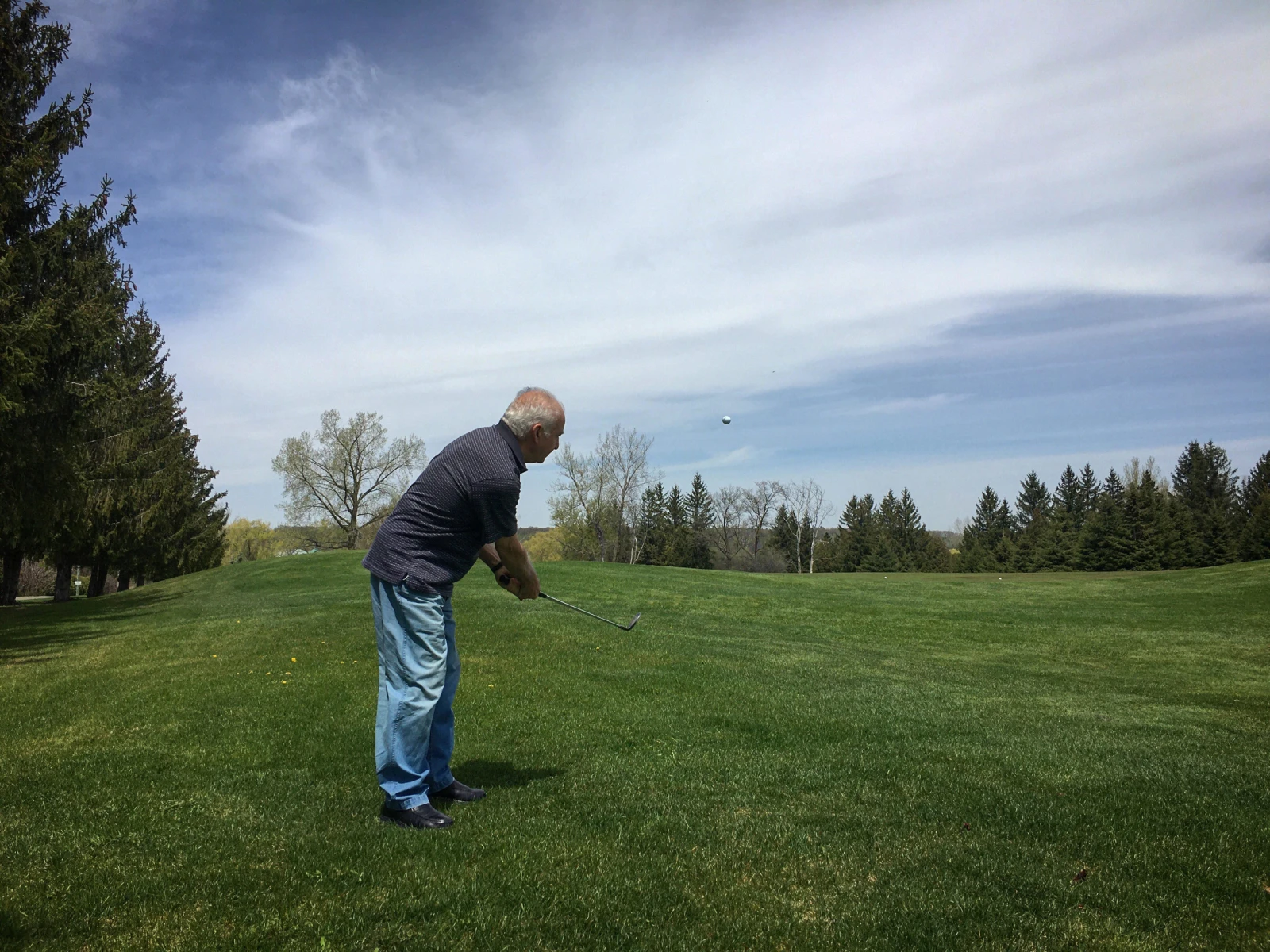 Parlant de passion, Giuseppe a tellement hâte de jouer au golf, qu’il est venu en douce pratiquer ses coups d’approche, en garant sa voiture près du vert du premier trou. « J’avais rien à faire et j’ai décidé d’aller me promener et voir l’état des terrains. C’est complet ici et à plusieurs endroits demain », raconte ce maniaque de 76 ans, qui dit jouer environ 25 rondes par saison. « J’avais hâte. Pour moi c’est le plaisir de l’été. Je ne suis pas bon, mais j’ai du fun », raconte humblement le golfeur, pendant que des bernaches chillent un peu plus loin autour de l’étang.