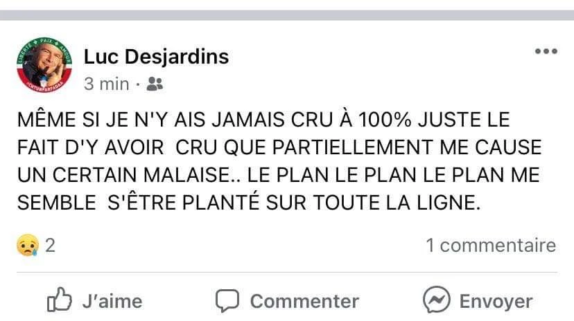 Un doute aussi exprimé avec transparence par Luc Desjardins, qui a avoué sur sa page Facebook ressentir un malaise à l’idée que le plan fasse patate.