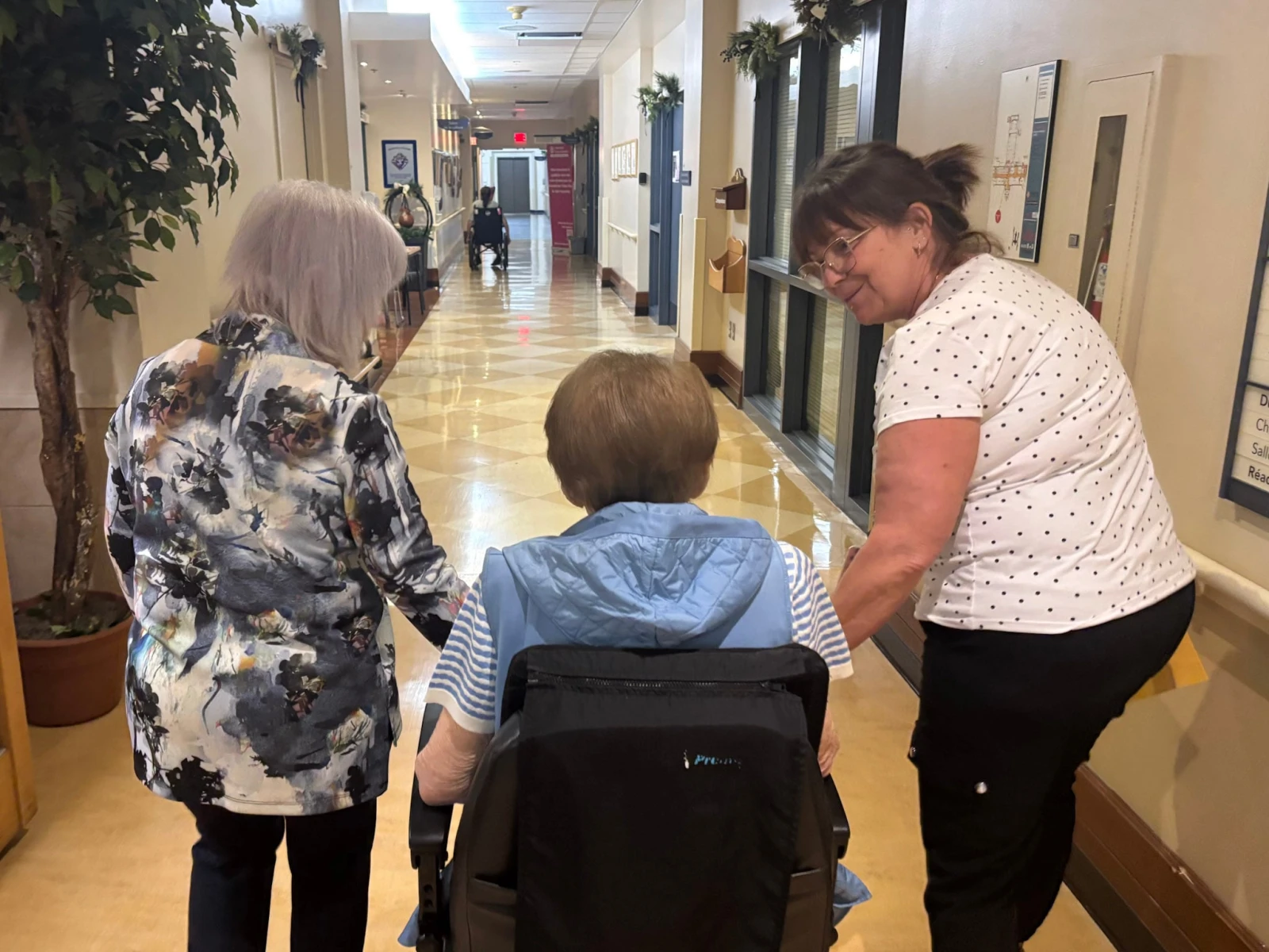 Mme Letendre s’amène dans le couloir du CHSLD au volant de son fauteuil motorisé. Elle est flanquée de son amie Agathe, avec qui elle s’est liée d’amitié au cours des dernières années.