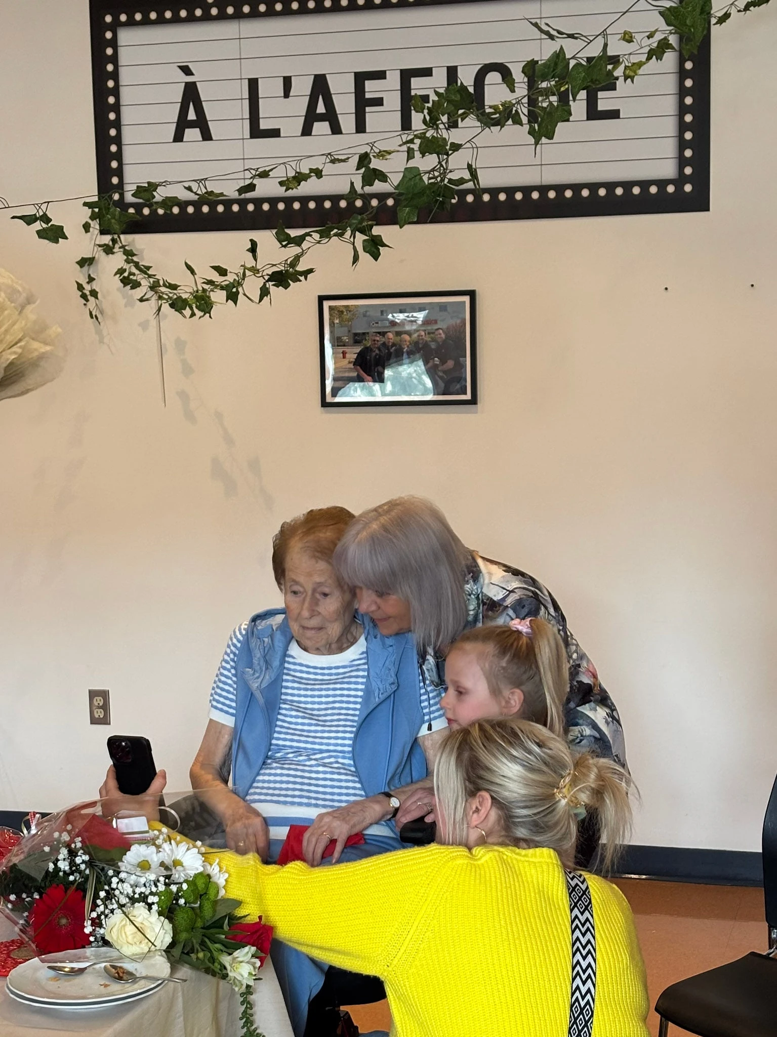 Ces derniers sont d’ailleurs présents à l’hommage pour célébrer la matriarche, en compagnie de quelques autres membres de la famille, dont son arrière-petite-fille, Livia.
