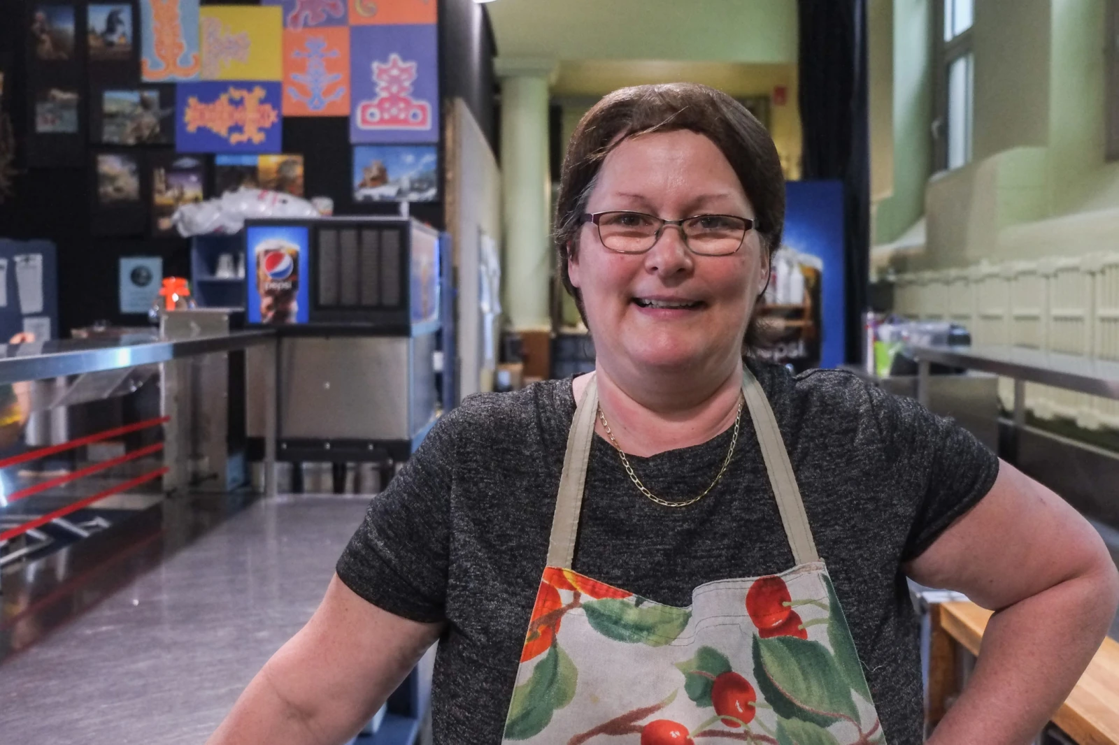 Je profite de la fin de la période de repas pour aller discuter avec une employée qui s’affaire à nettoyer le comptoir de service. « Je suis travailleuse ici depuis 20 ans, je suis la doyenne », déclare-t-elle d’entrée de jeu. Il s’agit de Sylvie Raymond, qui occupe un poste de préposée au service à la clientèle, un emploi qu’elle aime beaucoup, manifestement.