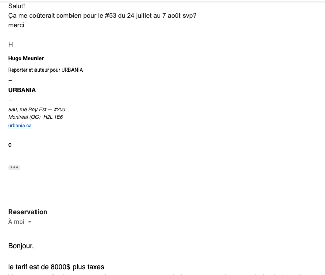 Et comme les vacances risquent de se passer au Québec cet été, le téléphone ne dérougit pas pour poser ses valises à un des 200 chalets en bois rond offerts sur le site de de M. Berthelette, principalement éparpillés dans le secteur du Mont-Tremblant. « J’ai habituellement 300 appels par jour et là c’est plus de 1000. Hier, mes deux réceptionnistes ont envoyé 1458 courriels en 24h, c’est non-stop! », calcule M. Berthelette, qui semblait avoir besoin de ventiler avec le bordel logistique qui fait rage depuis que les autorités ont autorisé le retour des chalets, campings et pourvoiries le 1er juin.