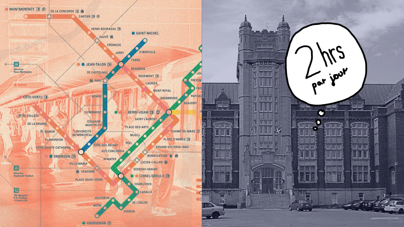 J’aurai donc quitté l’Université de Sherbrooke à cause de sa distance, pour finalement me taper l’équivalent de Montréal-Sherbrooke en transports en commun tous les jours. Sans regret.