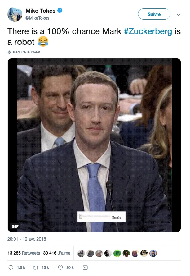 Notre boy de Facebook l’a pas eu facile en 2018. Les gens ont enfin catché que c’était un peu n’importe quoi de donner toute ses infos personnelles à un site internet et le bon Mark a dû aller s’expliquer devant le gouvernement américain et a bu de l’eau au passage. C’est à ce moment-là qu’on a appris qu’il était probablement un reptilien, un robot ou juste vraiment malade…