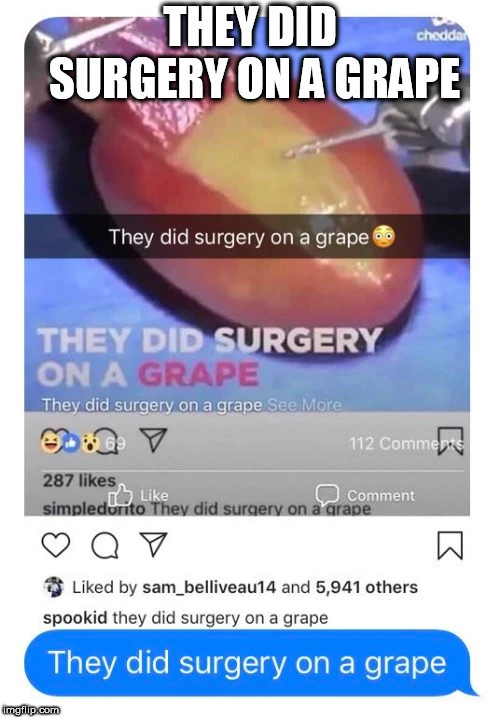 They did surgery on a grape. They did surgery on a grape. They did surgery on a grape. They did surgery on a grape. They did surgery on a grape. They did surgery on a grape.