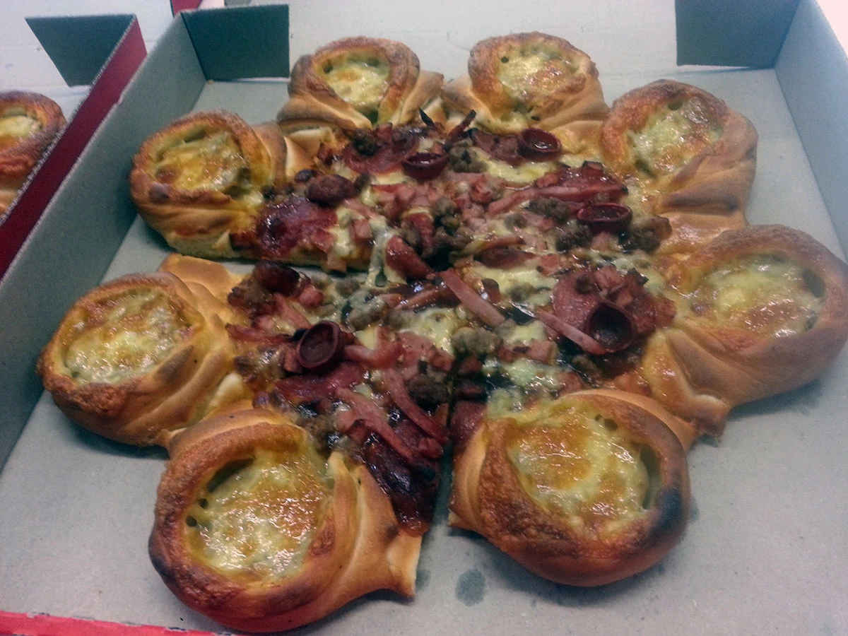 Apparemment inventée pour concurrencer la pizza à la croûte fourrée aux saucisses à hot dog de Domino’s, cette pizza gagne le prix de l’article de fast-food qui ressemble le plus à un extra-terrestre du film Aliens. C’est ben beau vouloir faire plus que son compétiteur, mais à un moment donné y manque d’espace. La cohésion visuelle c’est important. Quand t’as l’impression que ta bouffe va t’attaquer, personne n’en sort gagnant.