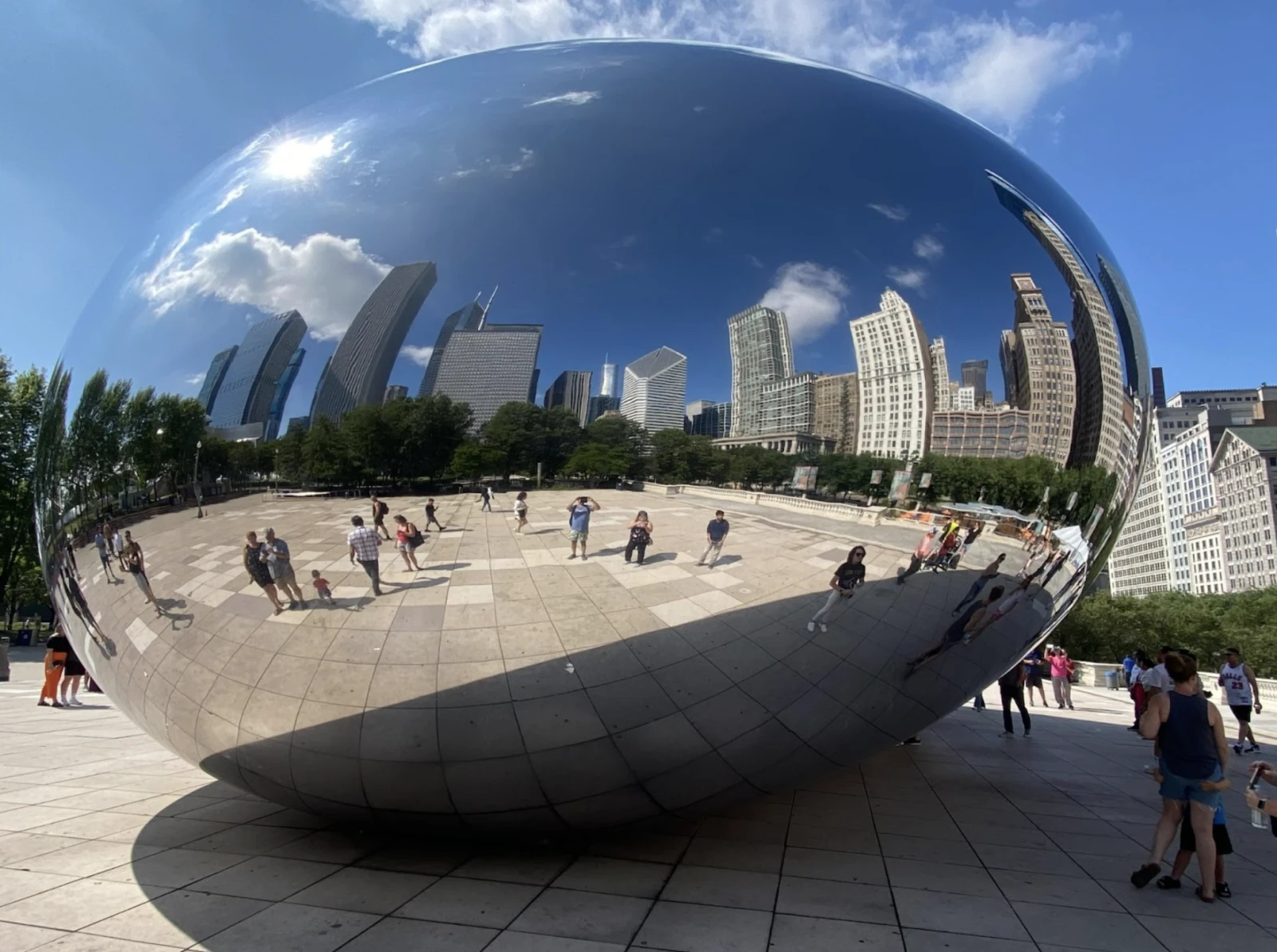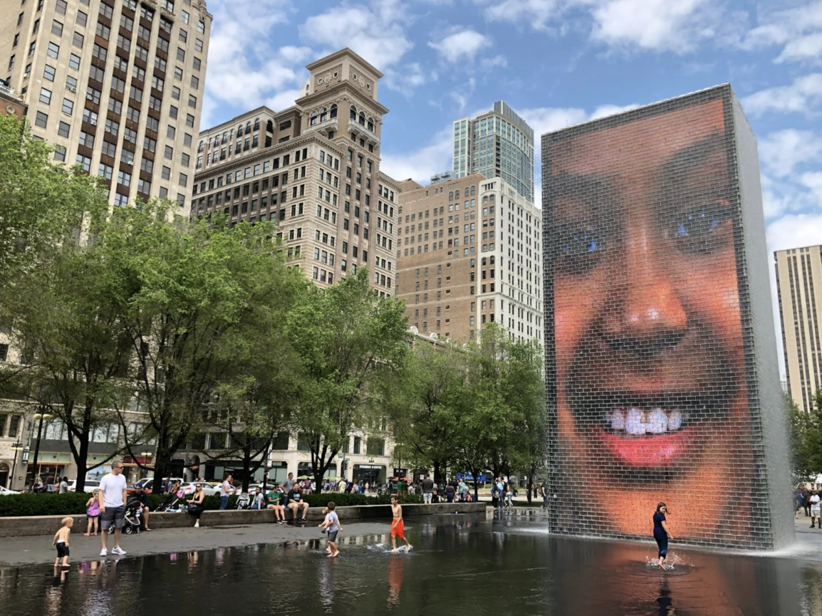 Après le Loop, direction le Millennium Park, un parc public au bord du lac dédié à l’art contemporain. La plupart des touristes se dirigent en direction de la sculpture-miroir en acier « Cloud Gate » de l’artiste anglais Anish Kapoor que les Chicagoans surnomment affectueusement « the Bean » (le haricot). Avec ses 20 mètres de largeur et ses 13 mètres de hauteur et un poids de 100 tonnes, cette structure sur laquelle se reflètent les immeubles des alentours est désormais le symbole de Chicago.