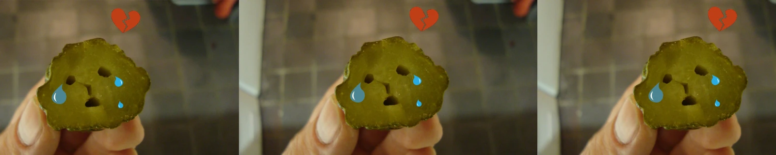 Inspiré du roman qui a profondément marqué mon adolescence Des cornichons au chocolat. Ce sandwich, qui sonne comme un trip de femme enceinte qui aurait fumé du pot, est en fait une parfaite métaphore de l’amour : si on se laisse avoir par l’enrobage sucré, on y croque à pleines dents et on devient aigre et amer. Et puis Fred détestait les cornichons, alors il en reste un pot presque plein dans le frigidaire.