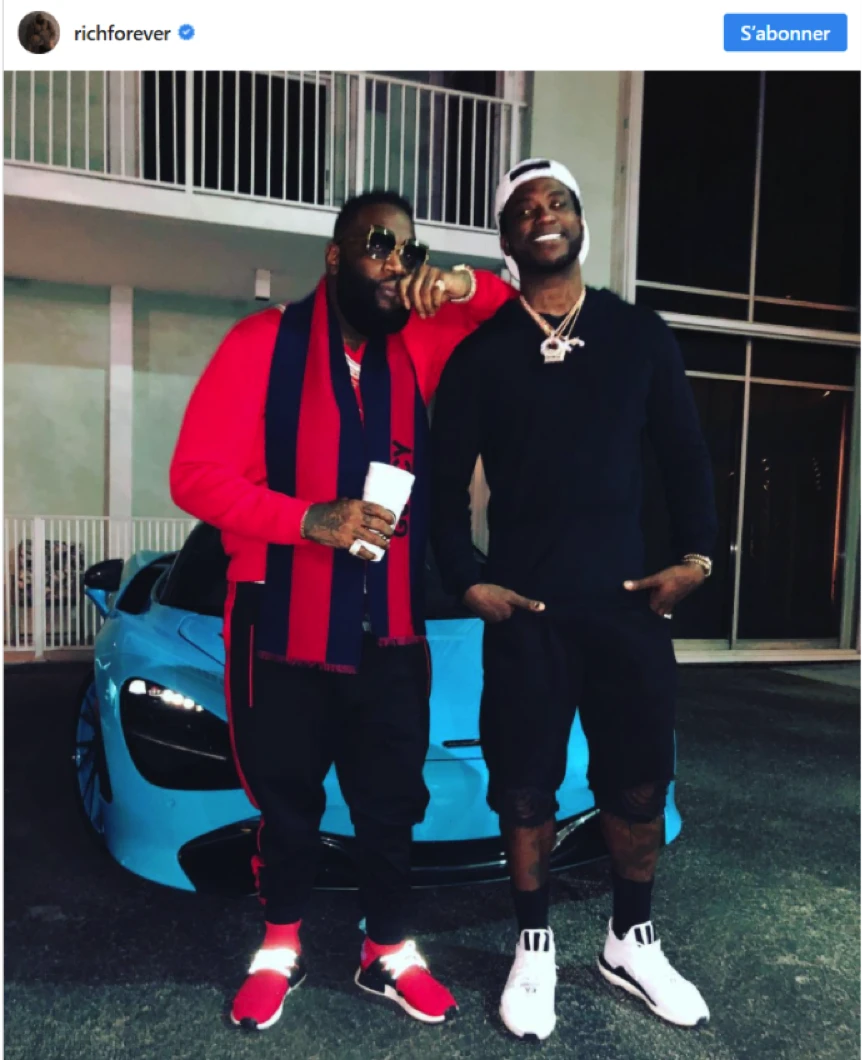 Je dis « rumeur » parce que seulement quelques jours après sa sortie de l’hôpital, Rick Ross était déjà en mode « chilling » avec son ami Gucci Mane, comme le prouve cette photo, qui montre le rappeur tenant un « double cup », le contenant reconnu des consommateurs de lean.