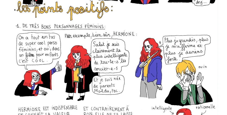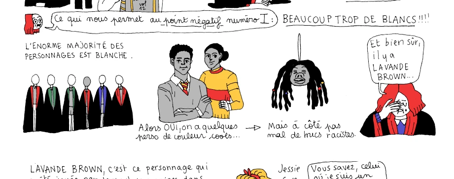 Mirion Malle, au contraire de Sophie Labelle, emploie un ton didactique dans ses bandes dessinées qui traitent de féminisme, de racisme, de représentation… et d’Harry Potter.