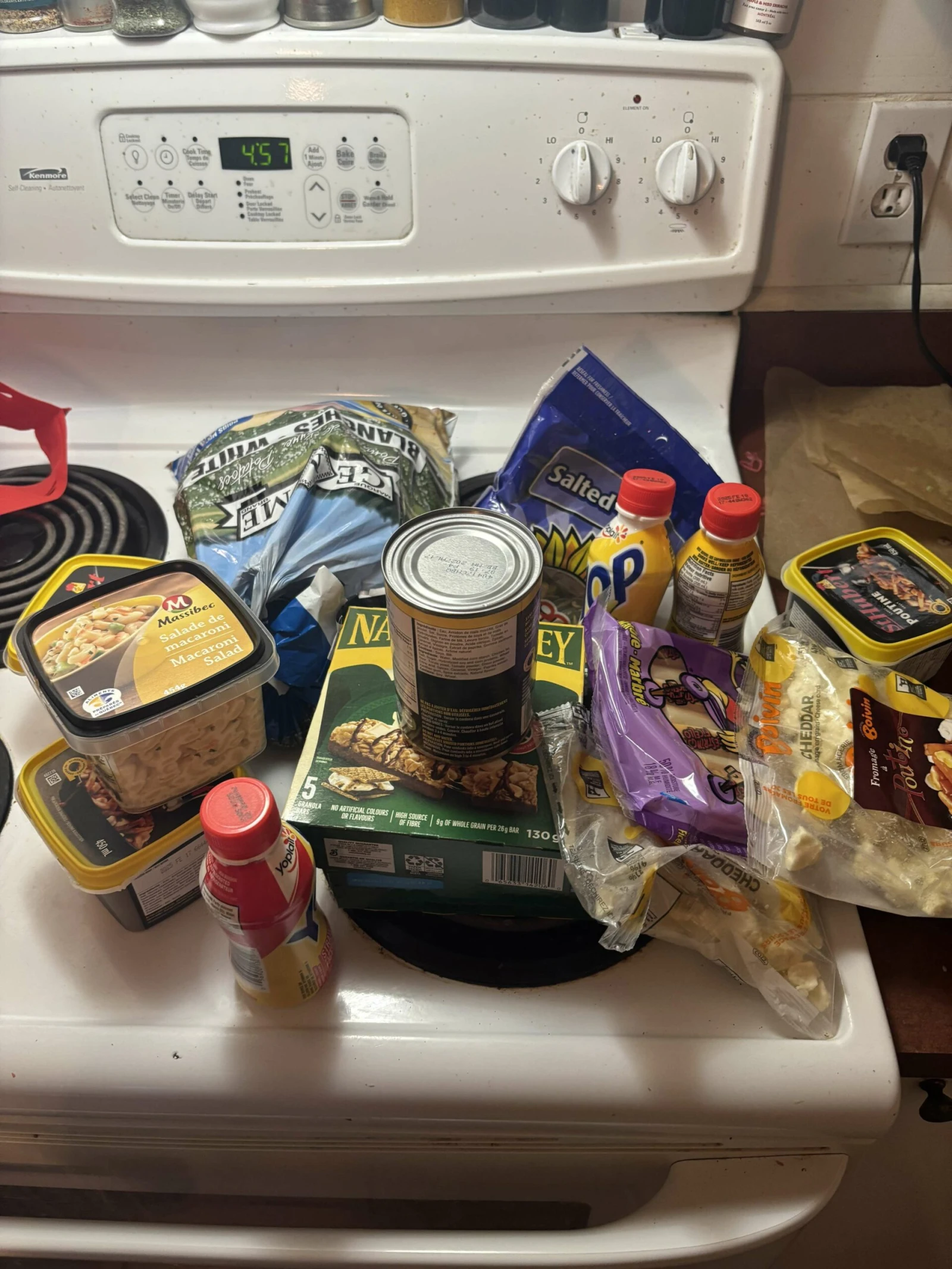 Pour le souper, j’opte pour une poutine maison, avec des patates (Île-du-Prince-Édouard), du fromage en crotte Boivin (Québec), le tout nappé de sauce Saint-Hubert (Ontario). Dans l’allée des chips, les Doritos et les Lays (USA) sont en solde.