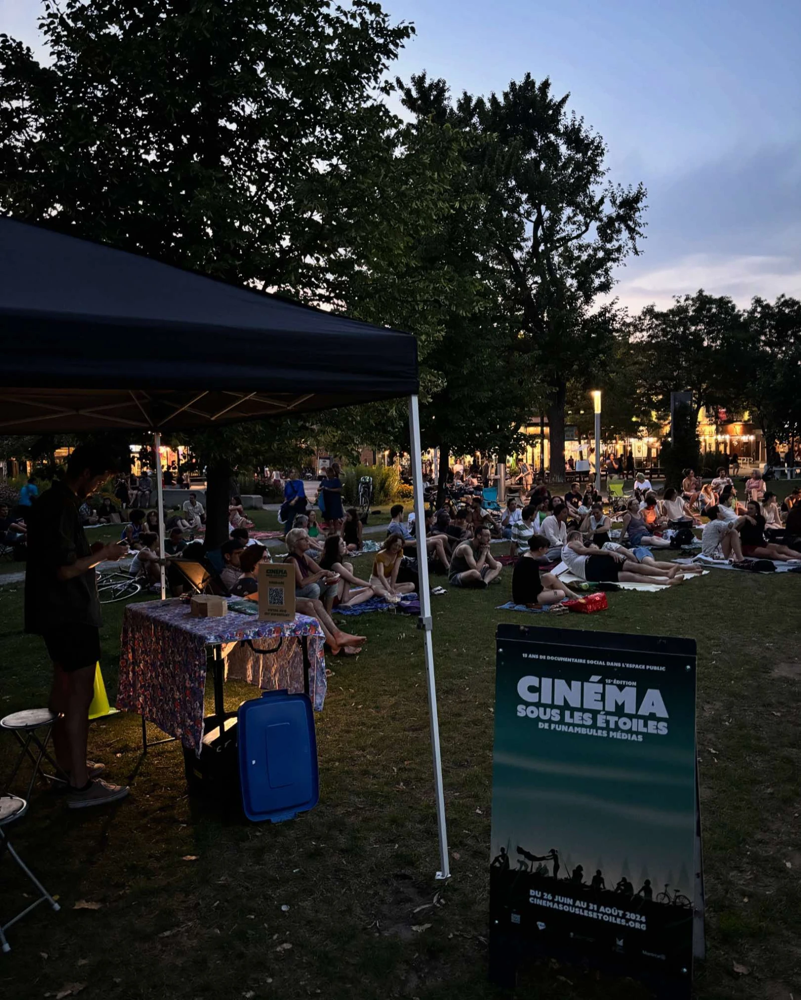 Ça se déroulait en marge de la 15e édition du Cinéma sous les étoiles, présentée par Funambules Médias, où une cinquantaine de mini-documentaires compétitionnent dans une vingtaine de parcs montréalais, mais aussi à Longueuil et dans la région de Brome-Missisquoi.