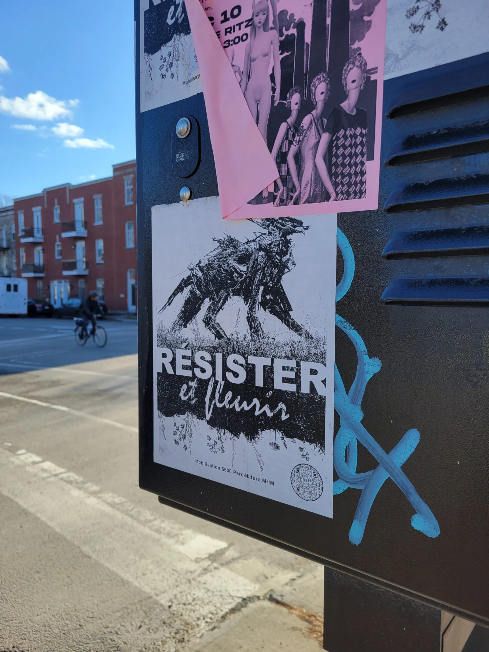 Les affiches et les collants qu’arborent depuis quelques années de plus en plus de poteaux et de murs des bâtiments d’Hochelaga font résonner les revendications de la mobilisation.