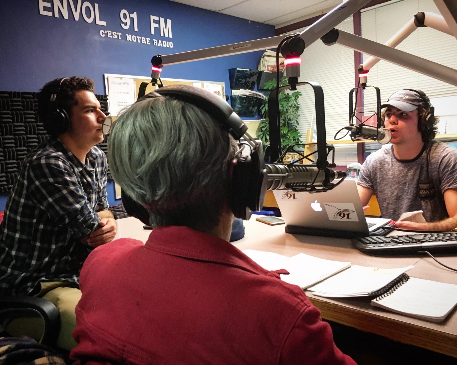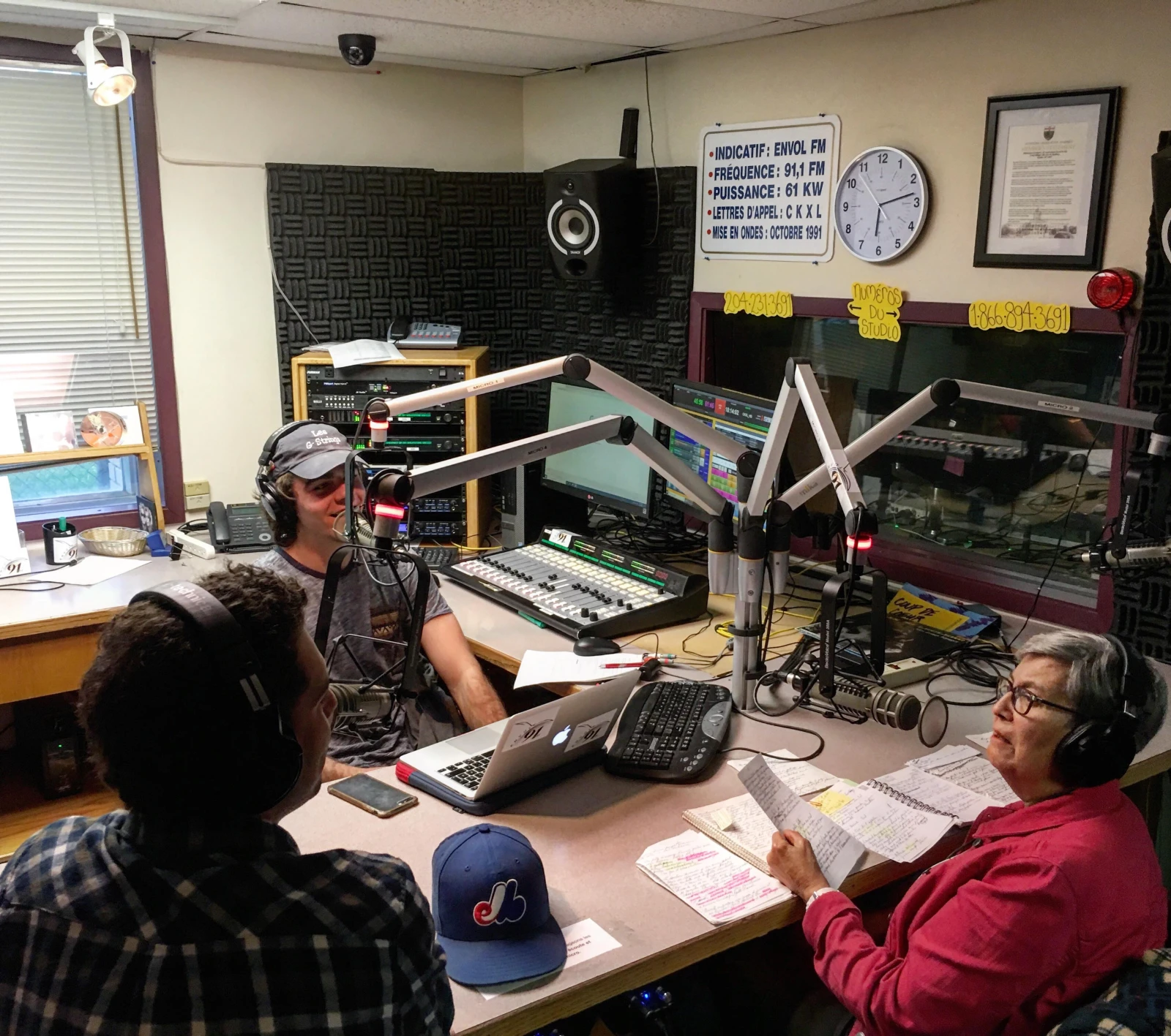 L’ambiance est surréaliste dans le petit studio d’Envol 91 FM, discrètement aménagé au fond du Centre Culturel Franco-Manitobain de Saint-Boniface, à Winnipeg.