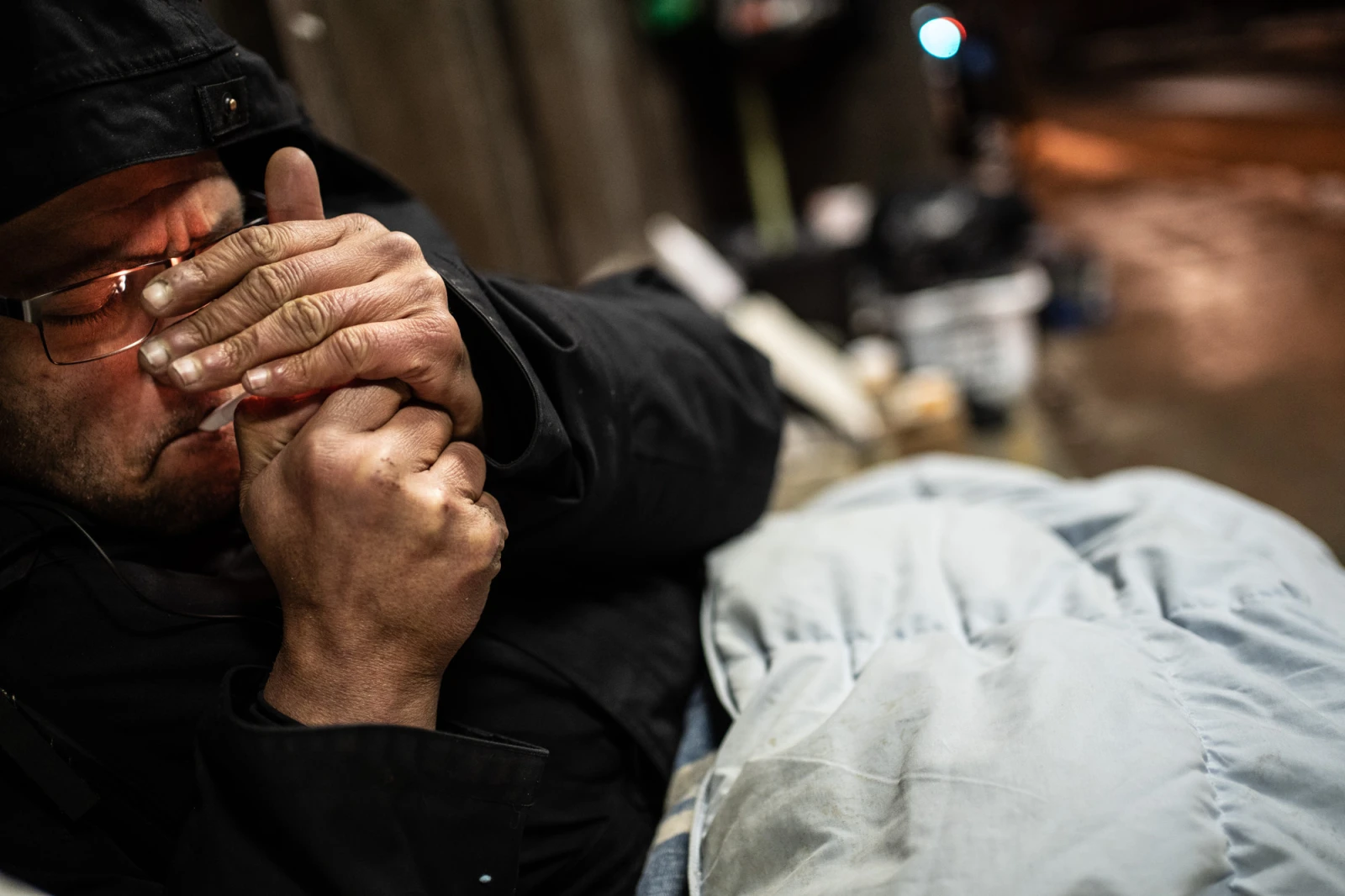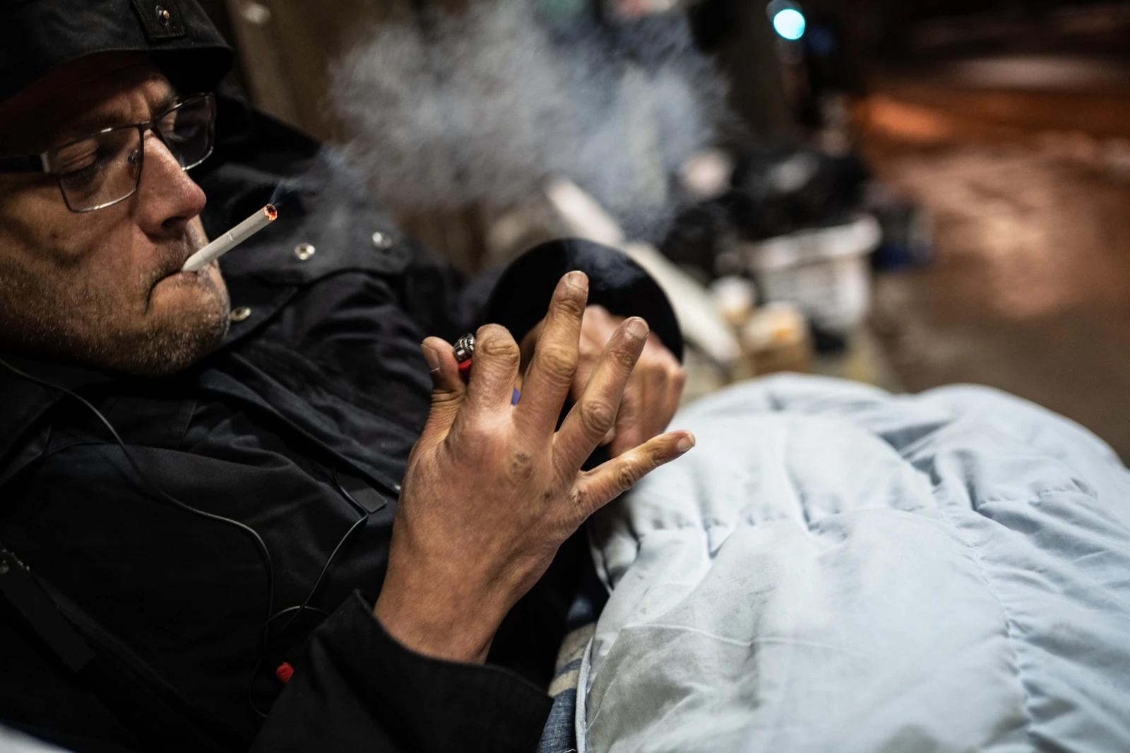 Quand nous avons repéré Johnny, il tuait le temps en consultant des tutoriels de JavaScript sur son cellulaire. L’homme de 46 ans s’est d’emblée réjouit de la décision de ne pas contraindre les personnes itinérantes à passer la nuit dans des refuges, lui qui fuit ces endroits comme la peste.