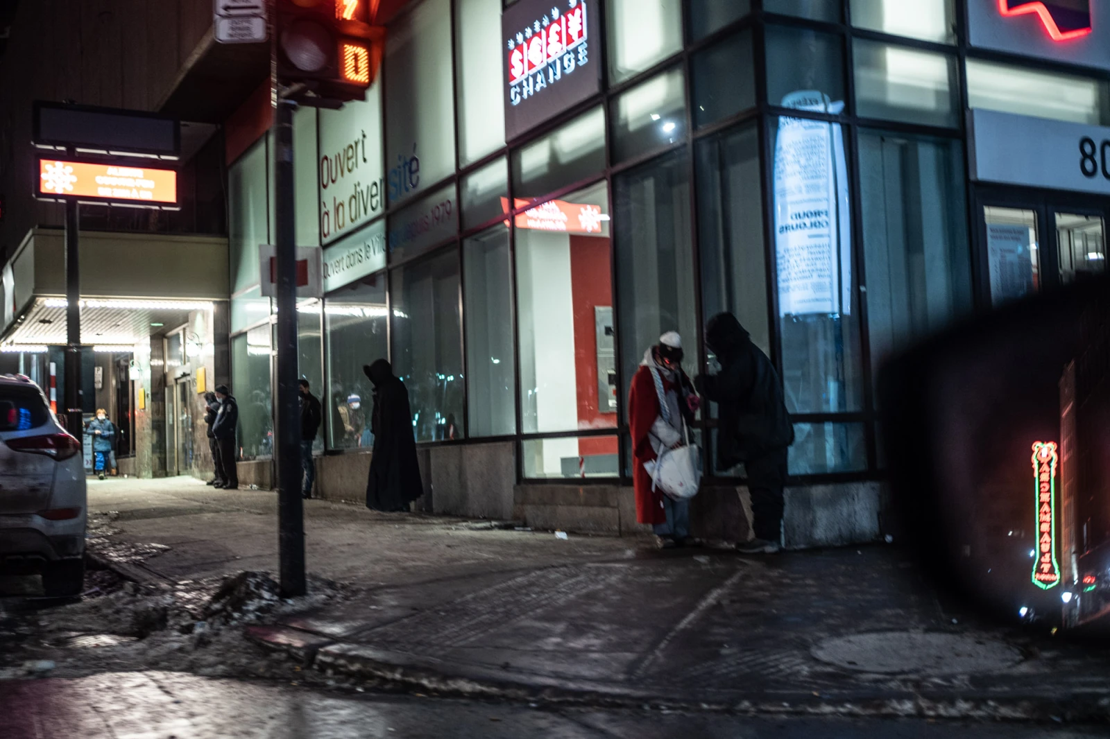 L’hôtel de la Place Dupuis notamment, qui accueille environ 300 personnes chaque nuit sur les étages de l’établissement transformé en refuge. « Je ne veux pas être plate, mais c’est un asile rempli de junkies », peste Johnny, qui préfère rester seul dans la nuit glaciale, flanqué d’un voisin tranquille et absent à notre passage.