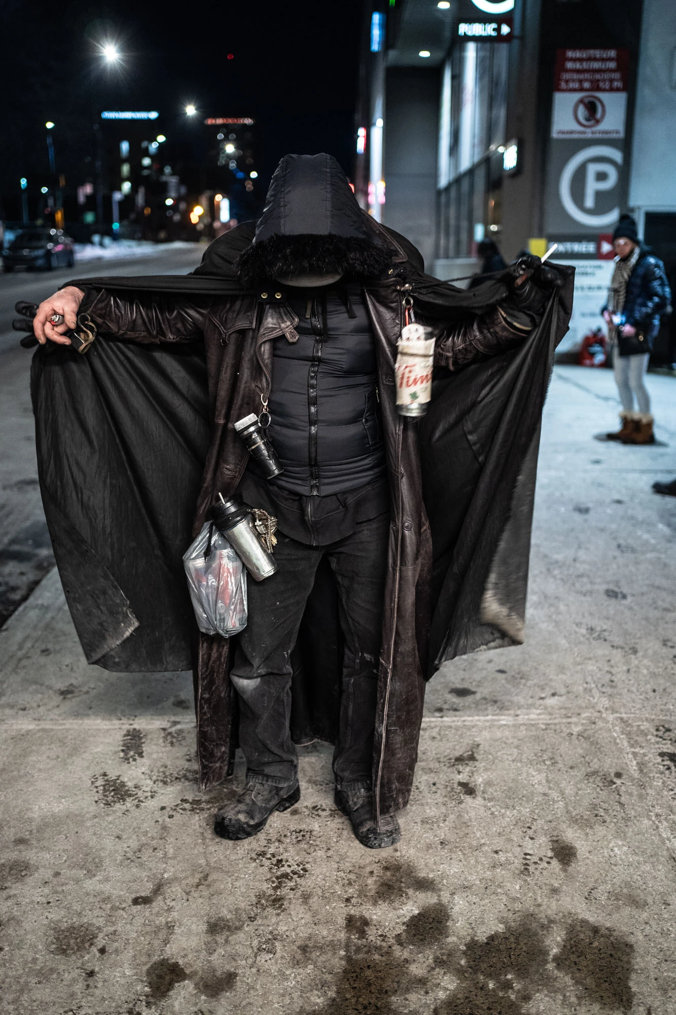 Il y a aussi cet homme de 60 ans impossible à manquer avec sa longue cape noire et son capuchon en fourrure synthétique, qui dit vivre dans la rue depuis 28 ans. Avec lui, un homme d’environ le même âge entreprend le long récit plutôt décousu de ses déboires. « Je suis coopérant international. J’attends le go de Trudeau pour aller au Congo, j’ai 300 employés qui attendent après moi!», raconte-t-il.