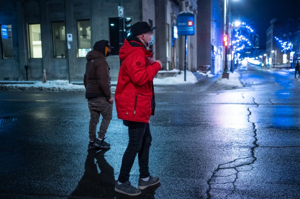 Parlant de couvre-feu, on parvient presque à l’oublier au centre-ville, où les gens déambulent à qui mieux mieux sur les trottoirs, sans chien en laisse ni papier du médecin pour maintenir un mode de vie à l’européenne. « On dort jamais dehors, c’est notre première fois », souligne en titubant un jeune homme enroulé dans un sac de couchage, en s’engouffrant dans le métro Saint-Laurent avec son ami s’amusant à faire tournoyer son squeegee au-dessus de sa tête.
