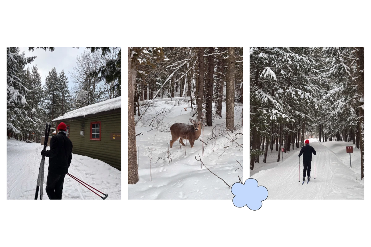 À peine avions-nous commencé notre sortie, qu’on a eu la chance de voir des chevreuils sur le sentier, et ça a vraiment fait notre journée! Puisqu’on y est allés le vendredi, il n’y avait presque personne sur les pistes, et le calme de la forêt a bien instauré un climat doux pour ce week-end qui s’annonçait bien ressourçant.