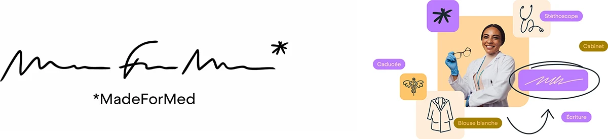 Parfois – trop rarement –, une bonne blague donne naissance à un logo. C’est le cas de MadeForMed, une plateforme française (comme son nom l’indique) de gestion des soins, qui simplifie la prise de rendez-vous médicaux et la communication. Tant qu’à s’adresser à un médecin, autant leur parler dans un langage qu’ils sont les seuls à comprendre! Voilà donc un logo volontairement illisible et complètement risible. Évidemment, les réactions sont mitigées – je l’ai même retrouvé dans une liste des pires logos –, mais je tiens à saluer une audace bien trop rare dans ce milieu plutôt frileux. Merci à l’agence Graphéine, c’est malade!