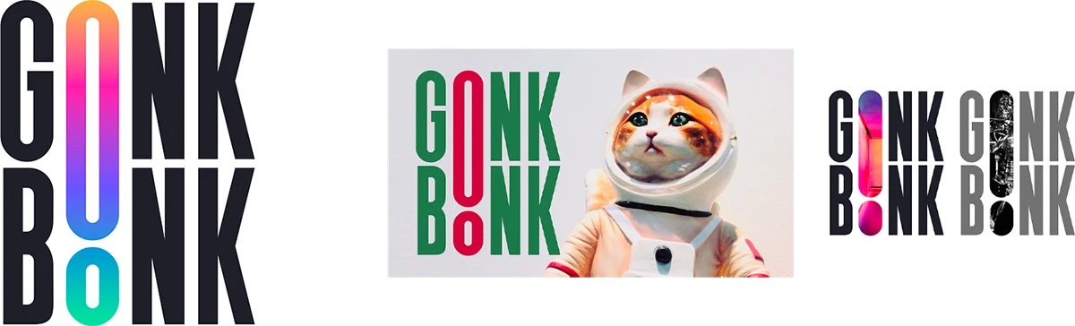 GonkBonk est un site dédié à la culture BD et manga. Comme si son nom n’était pas assez bondissant, le designer roumain Vadim Carazan en a rajouté une couche en empilant les deux O verticalement, et en les transformant en un point d’exclamation géant. Le logo s’adapte en permanence au contexte, et, dans la plupart des déclinaisons, ce gros ! attire notre attention par une couleur ou une texture distincte. Un bonk coup.
