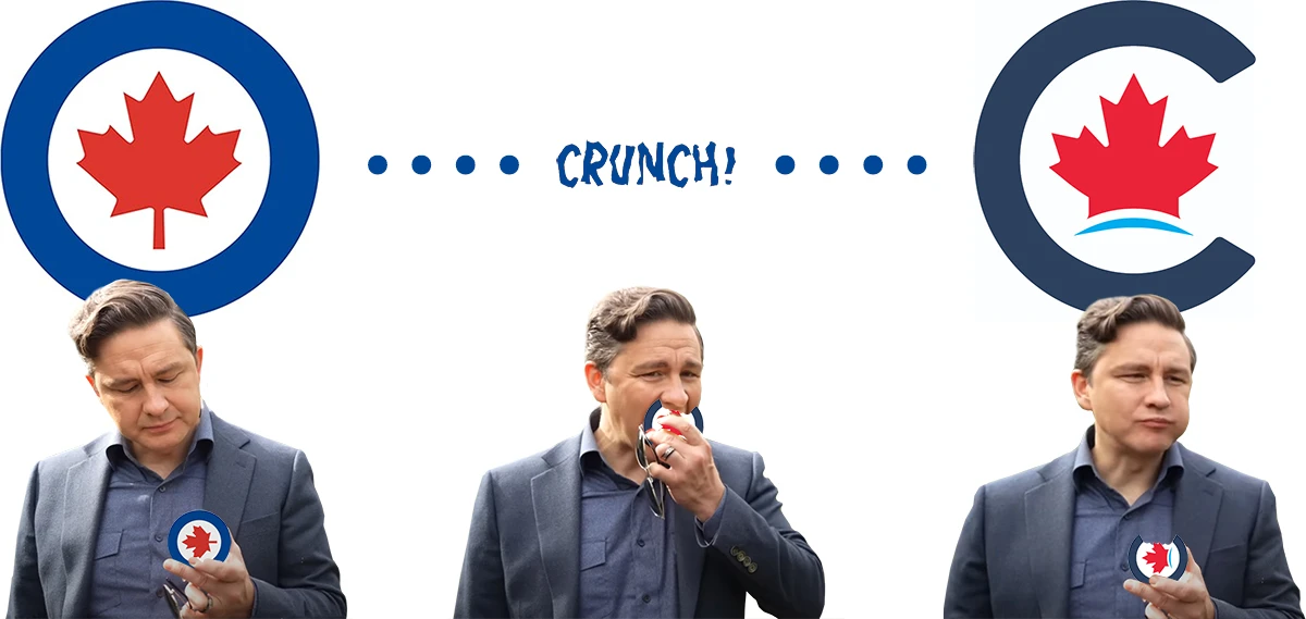 C’est la tradition : quand un nouveau chef conservateur fédéral arrive en poste, il pisse dans tous les coins, met ses pieds sur le bureau et scrappe les affaires de son prédécesseur pour montrer c’est qui, le boss. Pierre Poilievre s’est donc bricolé un nouveau-pas-si-nouveau logo en mordant dans celui de l’Aviation royale canadienne. Le gros bon sans-gêne.