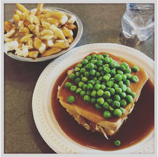 Clairement, à un moment donné dans l’histoire du Québec, il y a dû y avoir un problème massif de dentition, car de nombreux plats typiques ont la même consistance molle-visqueuse. Le hot chicken en fait partie. Ce sandwich-alien se compose de blanc de poulet bien humide, entouré de deux tranches de pain de mie non-grillées, surplombé de petits pois et arrosé de sauce brune (encore elle!). Oui, ça sonne comme ce qu’on servirait dans une prison ou une maison de retraite. Mais si c’est ça qu’ils servent à la maison de retraite, inscrivez moi dès maintenant pour y finir mes jours.