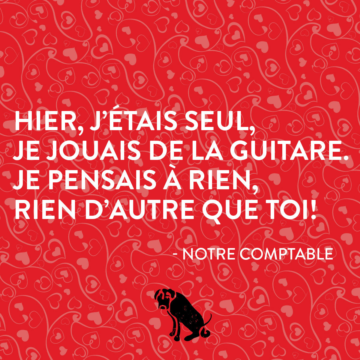 Chez URBANIA, c’est notre comptable qui transpire la séduction et qui nous enseigne quotidiennement les parfaits petits mots d’amour.