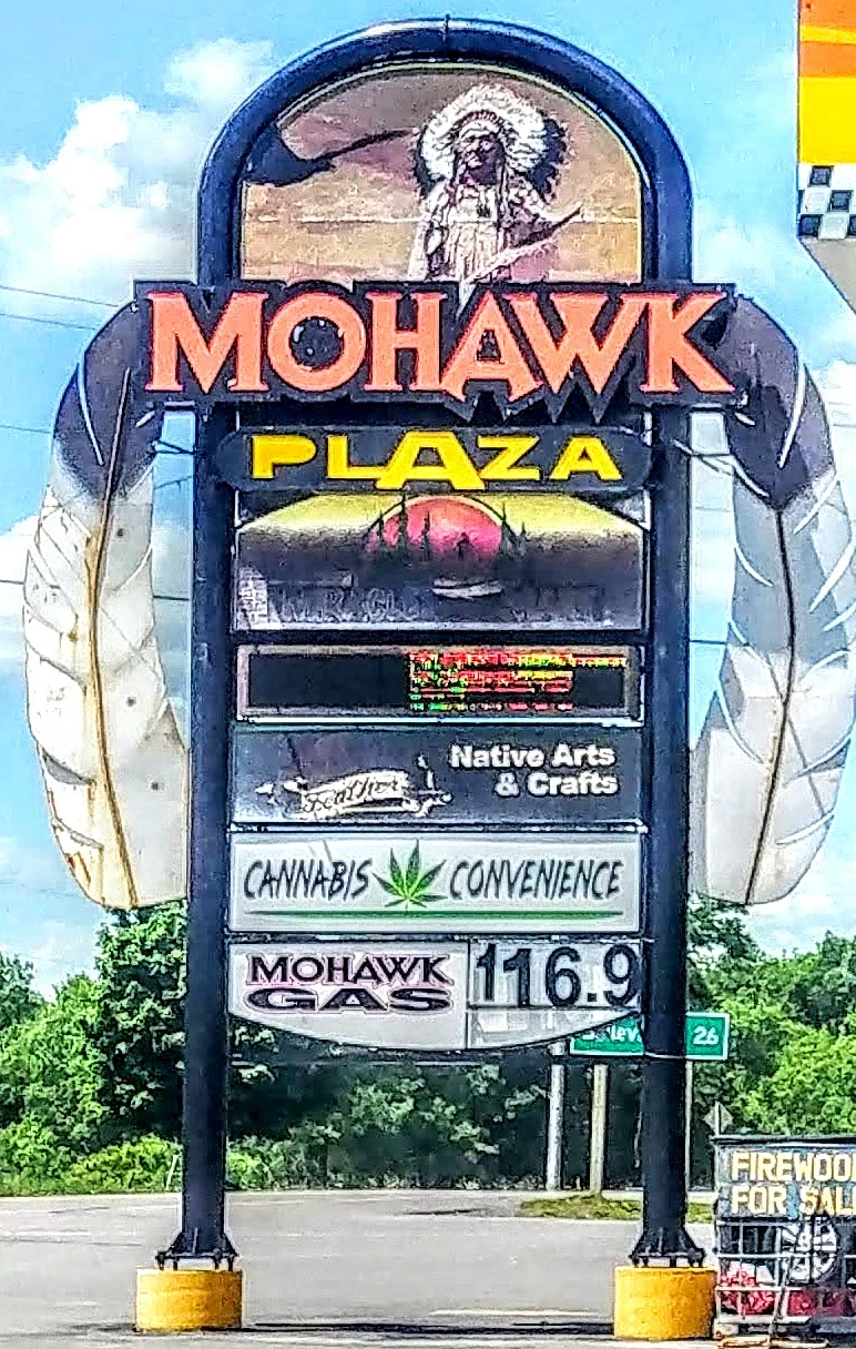 — Les surréalistes cannabis convenience stores présents partout sur le territoire Mohawk et le prix de l’essence;