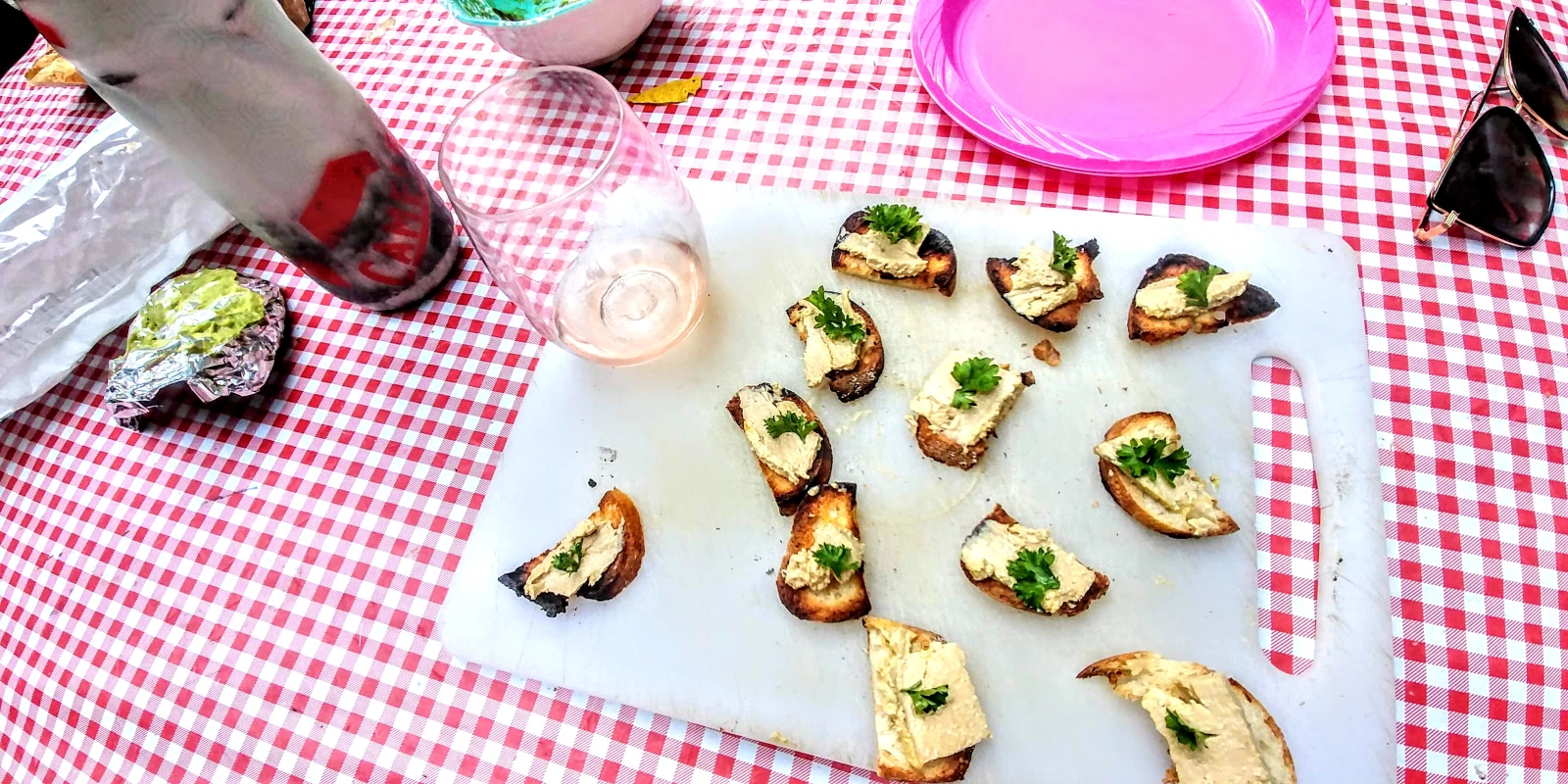 Set-up zéro pinterest et zéro instagrammable, mais c’est beaucoup ça la vie de vaners. Même le foie gras a pas l’air si appétissant sur une planche à découper éternellement sale, à côté d’un vieux bol de guacamole défraîchie et une gourde, sur une nappe carrautée (elle aussi sale en permanence). Bourgeois? Oui et totalement assumés. Ben semi, le pain, c’est un pain à hot-dog…