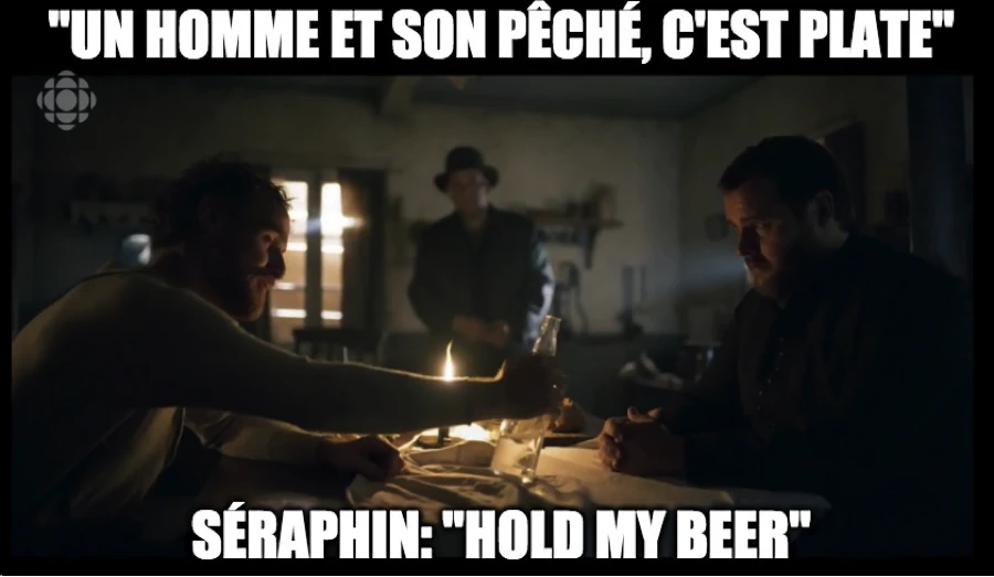 À ses côtés, Séraphin devient un véritable mythe dès le début de la 4e saison, c’est-à-dire qu’il ne devient plus la simple incarnation du défaut de l’avarice (comme on l’a toujours lu au Cégep), mais représente quelque chose de plus gros. Honnêtement, le personnage est rendu presque cosmique. Rapidement au début de la saison, les villageois, le voyant perdre ses convictions suite au départ de Donalda, lui implorent de redevenir le Séraphin d’autre temps.
