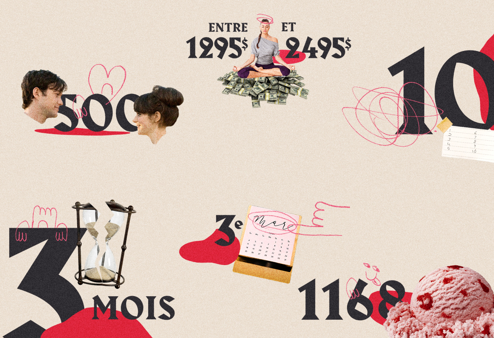 Coût, en dollars américains, d’une fin de semaine au Renew Breakup Bootcamp, une retraite pour cœurs brisés (et exclusivement féminins). À ce prix-là, le séjour — qui ressemble davantage à une longue thérapie de groupe qu’à une course à obstacles dans la « bouette » à se faire gueuler dessus par des entraîneurs frustrés — comprend l’hébergement dans un luxueux domaine en pleine nature ainsi que des séances de yoga, des ateliers thérapeutiques et des sessions de méditation sous l’égide de la fondatrice, Amy Chan, une ex-cadre en marketing. Vos finances ne vous permettent pas de vous payer un tel séjour ? On doute qu’un après-midi à D’Arbre en Arbre avec Chantal Lacroix produise le même effet libérateur, mais sait-on jamais…
