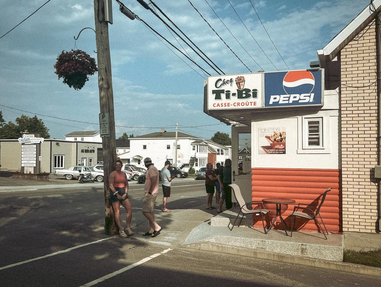 Sous l’odeur de la chaleur mêlée à la pluie fraîche sur l’asphalte, les hommes sortent de la Compagnie de Placage, face à l’ancien ciné-parc. Je roule devant la nouvelle adresse du Musi-Café, sur une portion commerciale pimpante de type outlet Dix30, avec à ses côtés le Dollarama qui venait d’être rénové avant de partir en fumée.