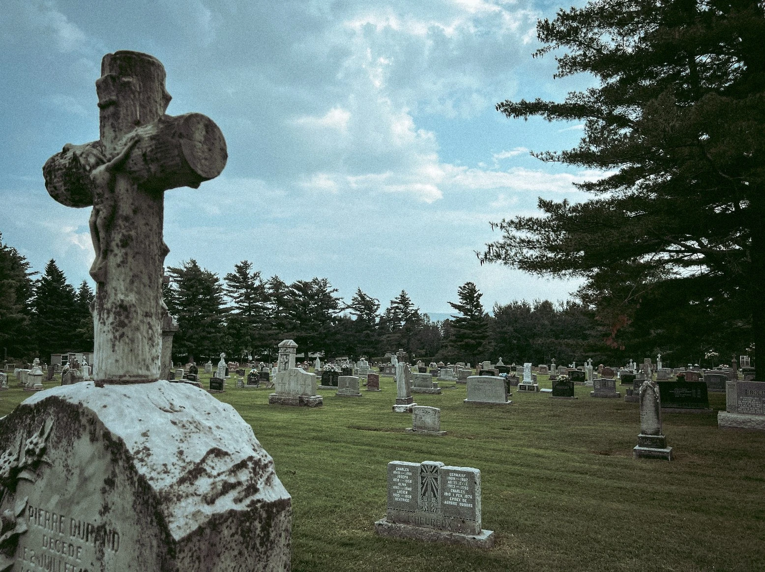 Mon errance dans ce village inconnu qu’aujourd’hui tout le monde connaît m’amène au cimetière. J’imagine que la nature tragique de mon voyage l’aimante ici, sans trop savoir pourquoi j’y suis. Une Toyota montée s’approche et son passager baisse la vitre, avec de grosses barniques et une ligne de barbe : « Si tes pas d’icitte, décrisse ».